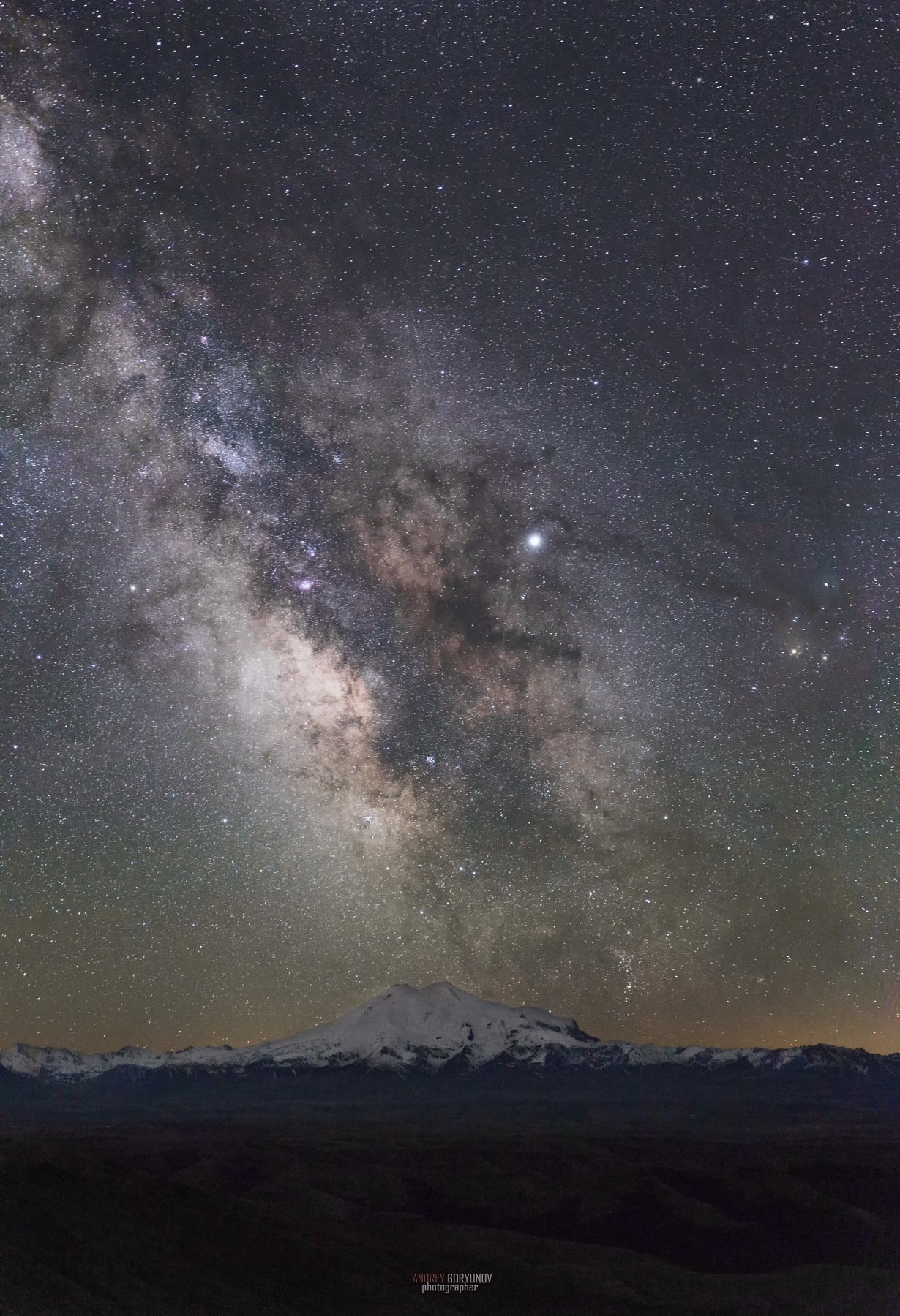 ночь, горы, эльбрус, кавказ, звезды, млечный путь, Андрей Горюнов