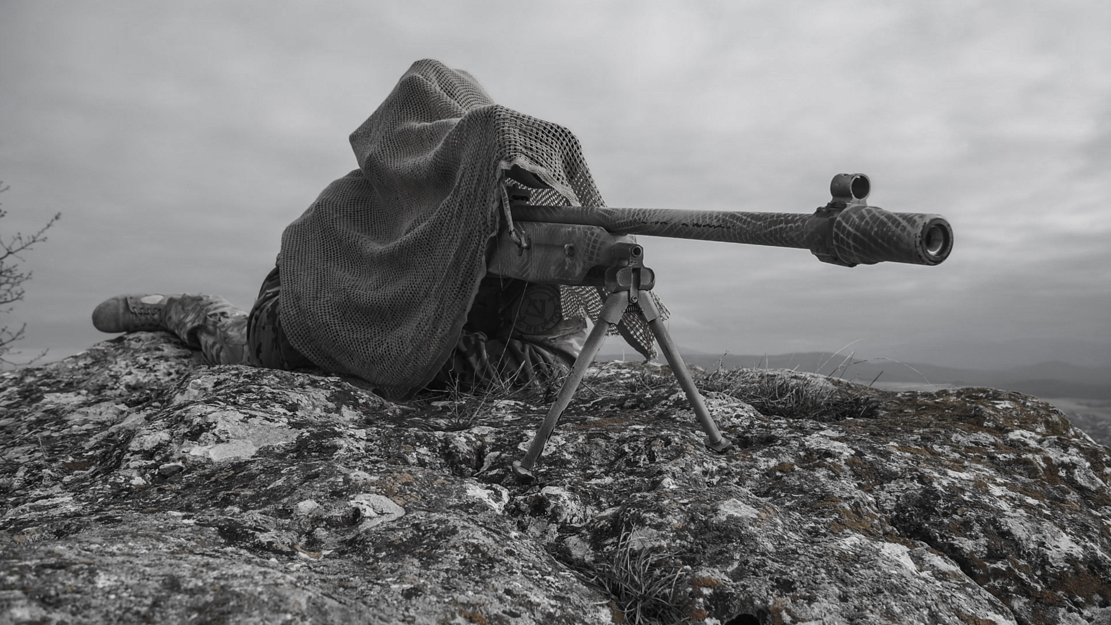 Он действительно находится на высоте примерно в 100 метров от контролируемой им зоны, через эту сетку вполне нормально просматривается прицел, про маскировку сеткой ничего не скажу. Я не снайпер, а этому бойцу виднее зачем он так сделал, с учетом его богатого опыта.