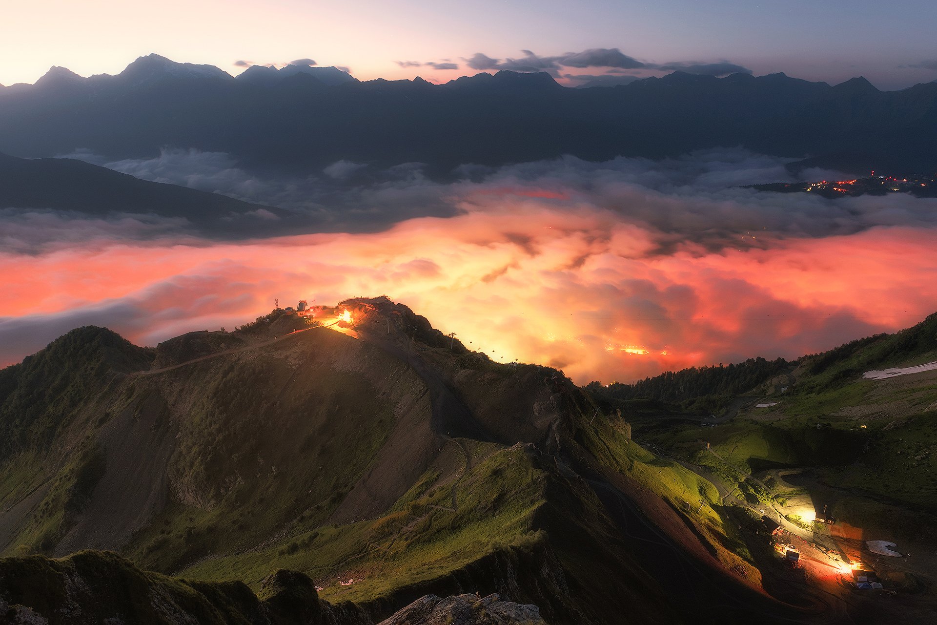 ночь, горы, облака, пейзаж, кавказ, красная поляна, Tania Leschinskaya
