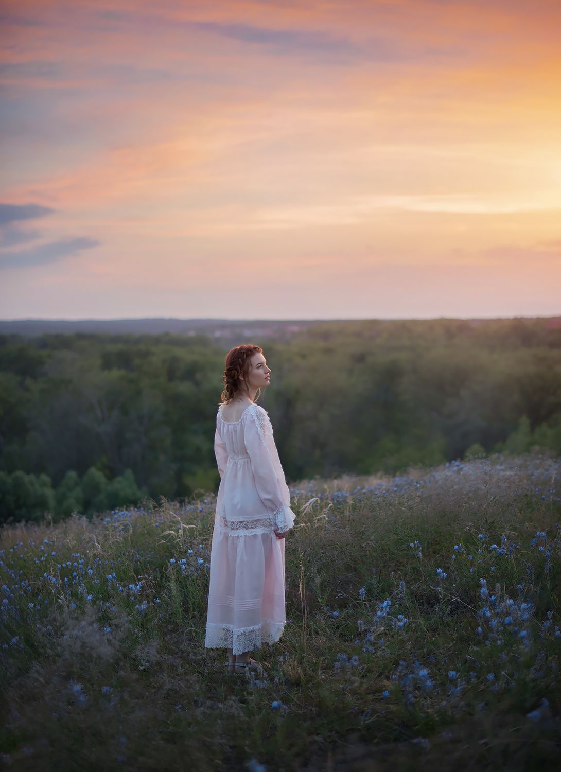 девушкалеторомантикаплатьеприродацветы