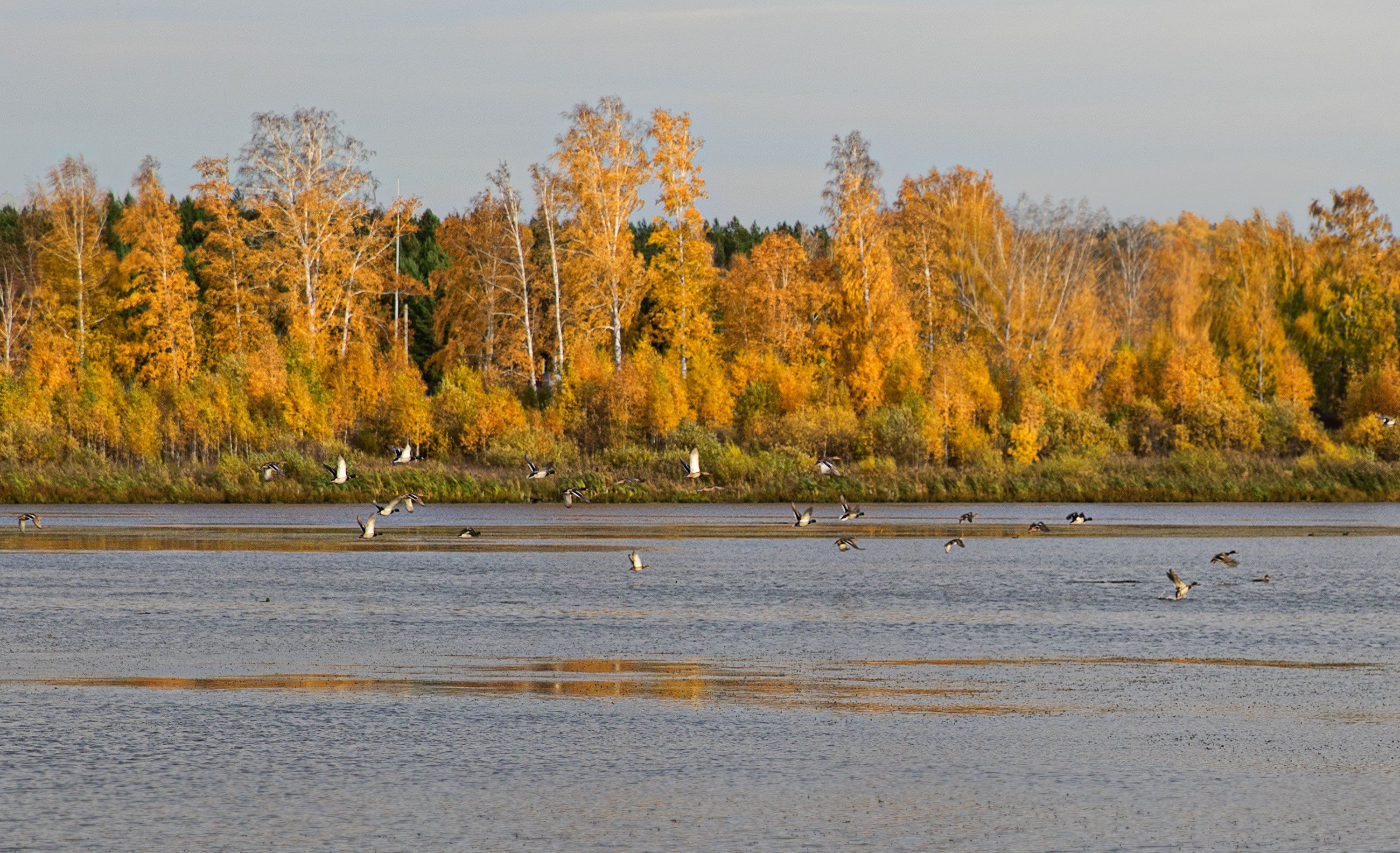 осень, утки, болото, озеро, пейзаж, Вера Лопатина