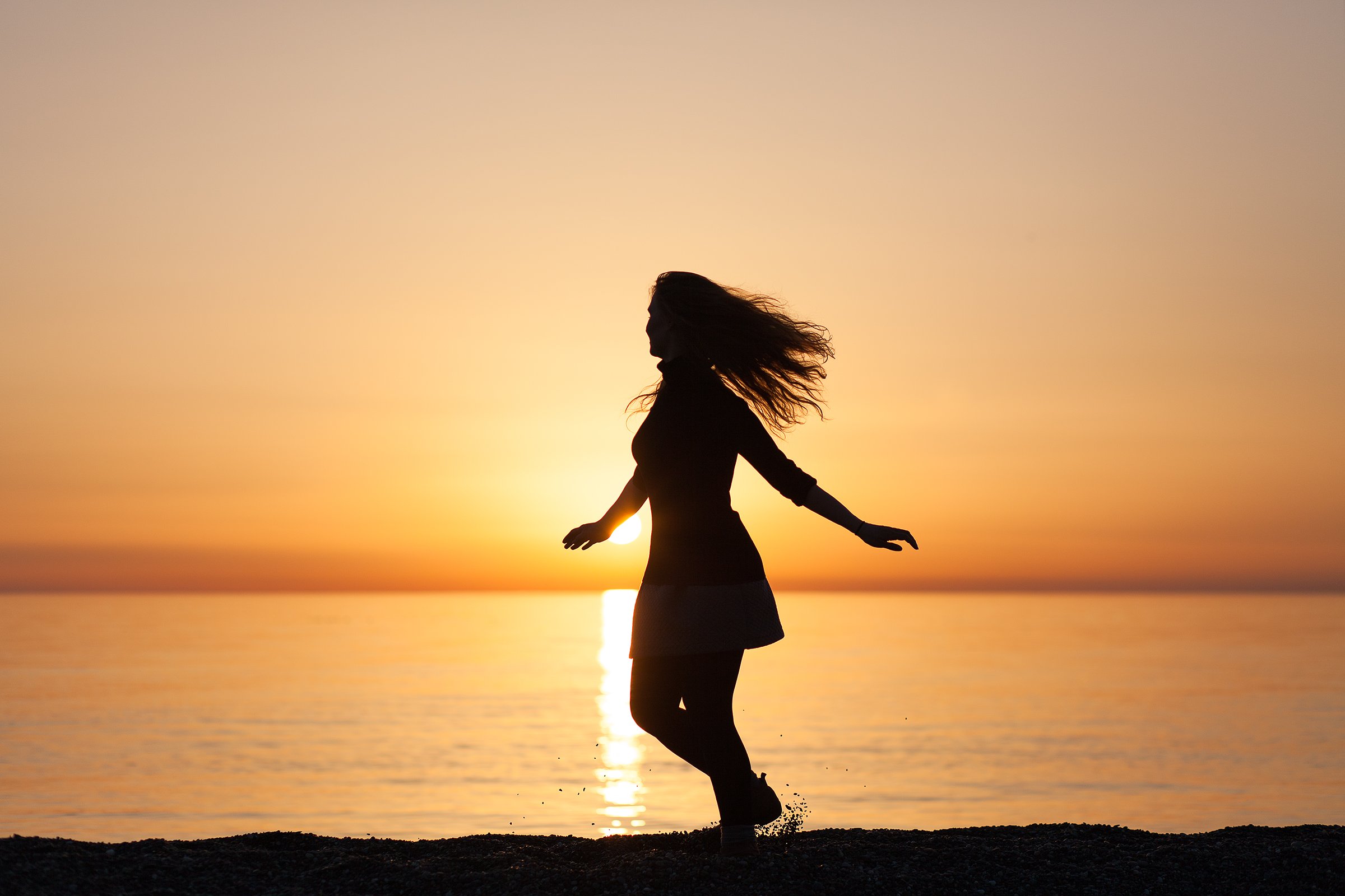 девушка, закат, золото, море, пляж, танцует, волосы, Дмитрий Лопатин