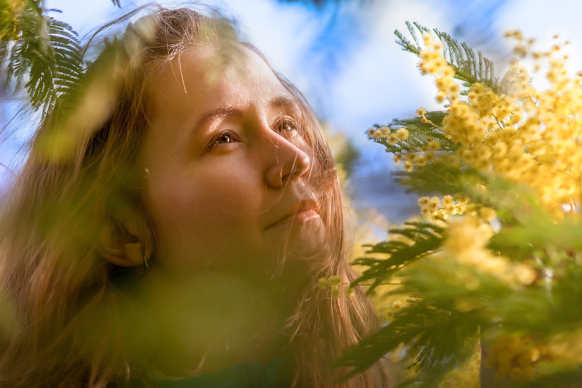 мимоза, цветет, девушка, Дмитрий Лопатин