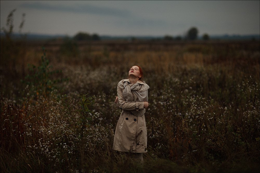 autumn, girl, portrait, cold, field, cloudy, Данила Лопаткин