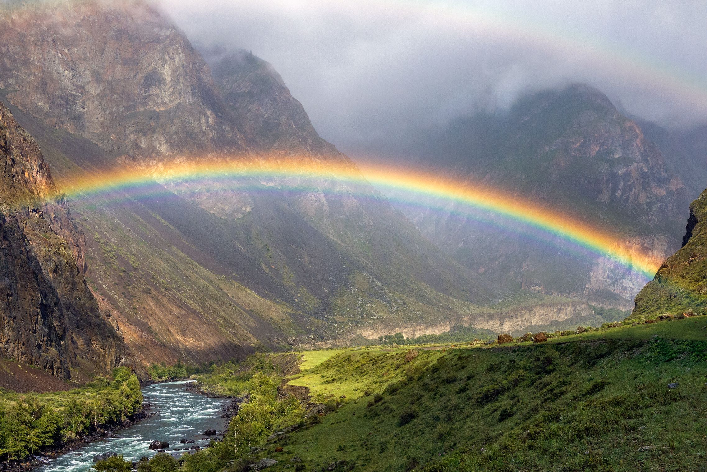 Если бы не остановились и завернули за очередной поворот,то радуга так и осталась бы сзади незамеченной.