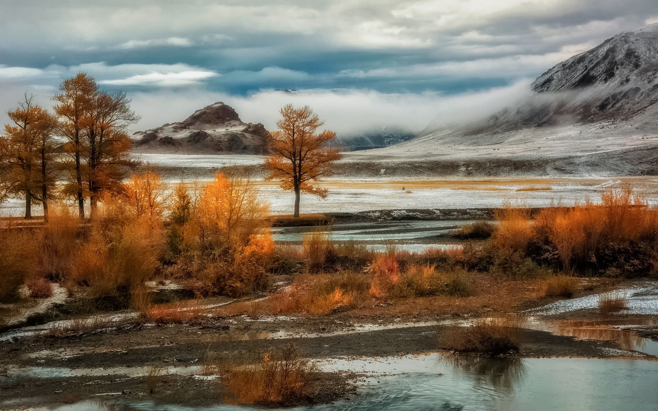 горный алтай,сентябрь,река чаган-узун,туман,первый снег, Lora Pavlova