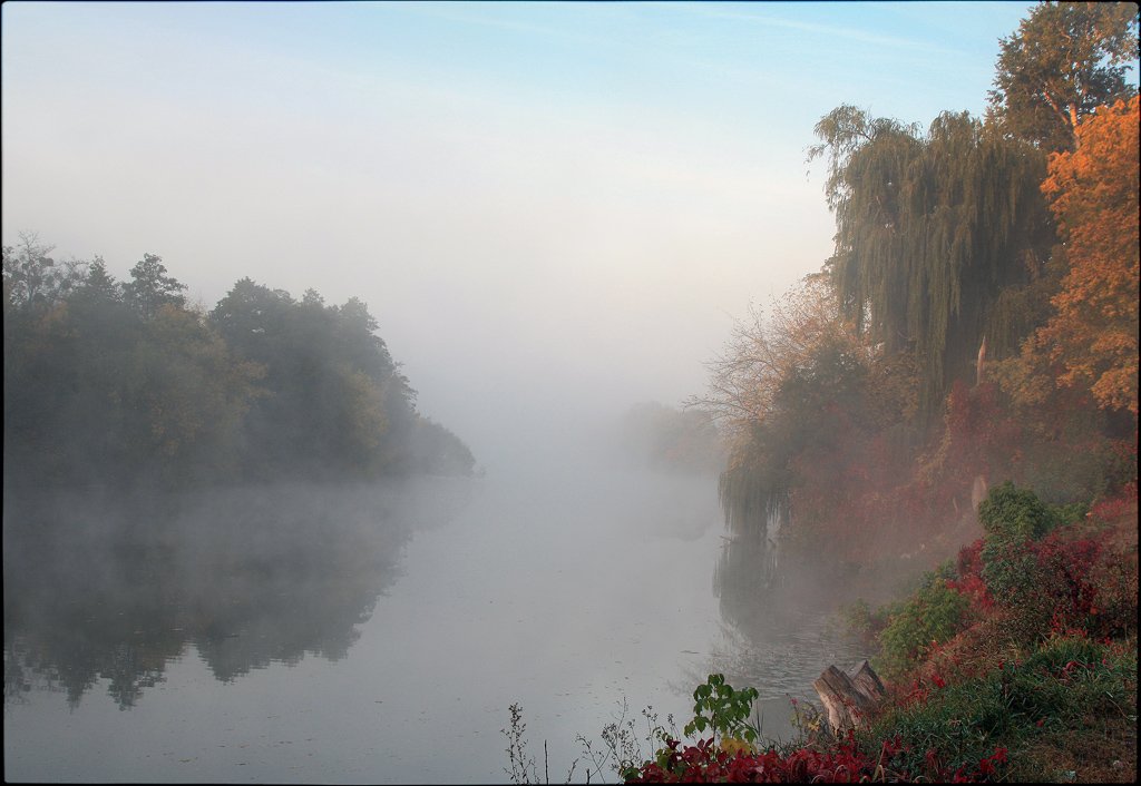 Лариса, а что это за поросль красного цвета на переднем плане? На деревьях красные листья видел, а вот такой кустарник - нет, честно говоря ( а может, уже и забыл, давно в Сибири живу, у нас такого нет). Очень хорошо эти красные листики вписались, как-то разнообразили цветовую гамму, что ли...Из критики: опять птичек нету :) Требую пустить на воду хотя бы одну утку! :)