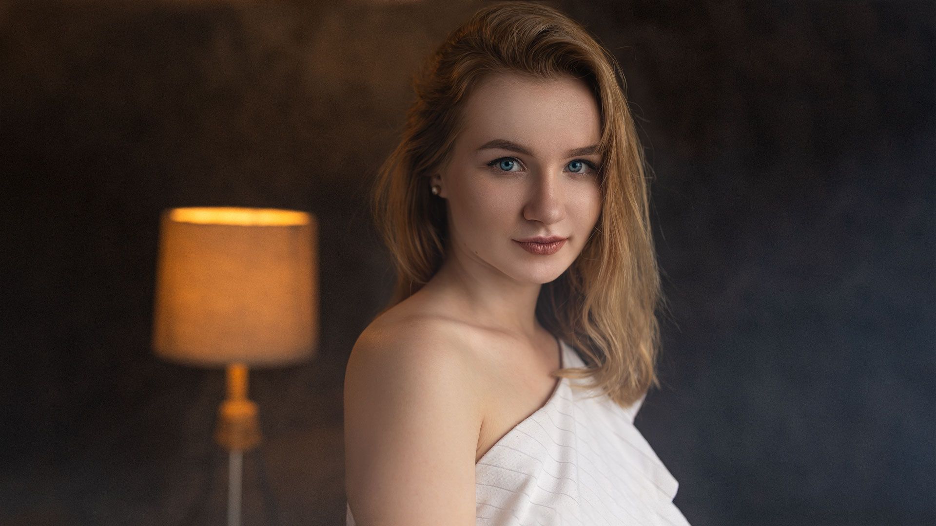 девушка, портрет, студия, естественный свет, темный фон, свет, торшер, Иван Лосев