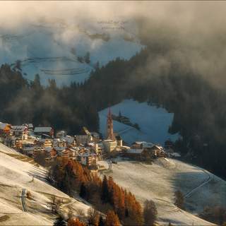Деревня под облаками в Доломитовых Альпах