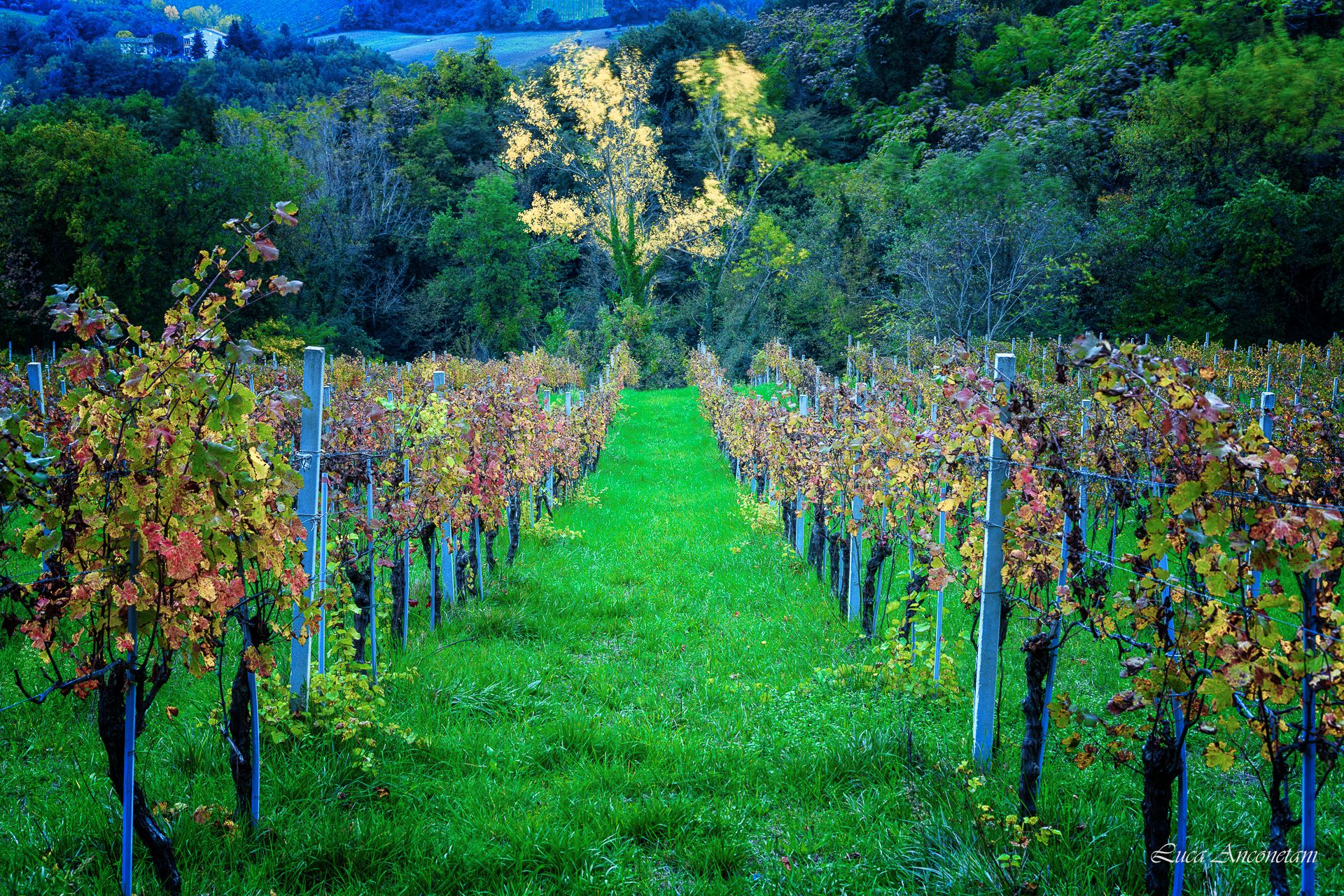 wine autumn field italy leaves trees landscape marche region italy, Anconetani Luca