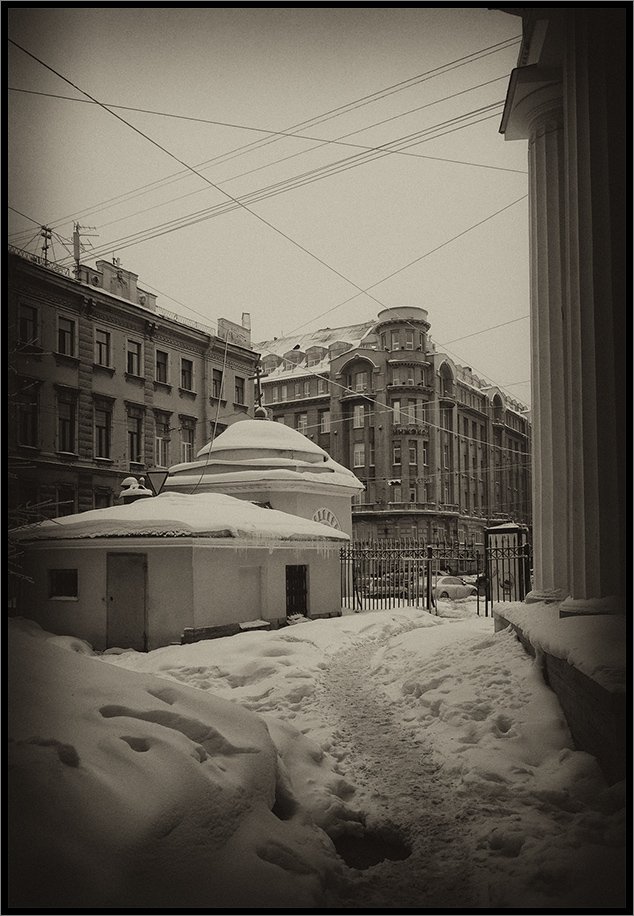 Снято около Музея Арктики и Антарктики за пару часов до поезда в Москву. Коньяк у нас с Кириллом Шаповаловым безнадежно закончился, рождественские каникулы тоже, пора ехать домой но этот волшебный город не отпускал...
