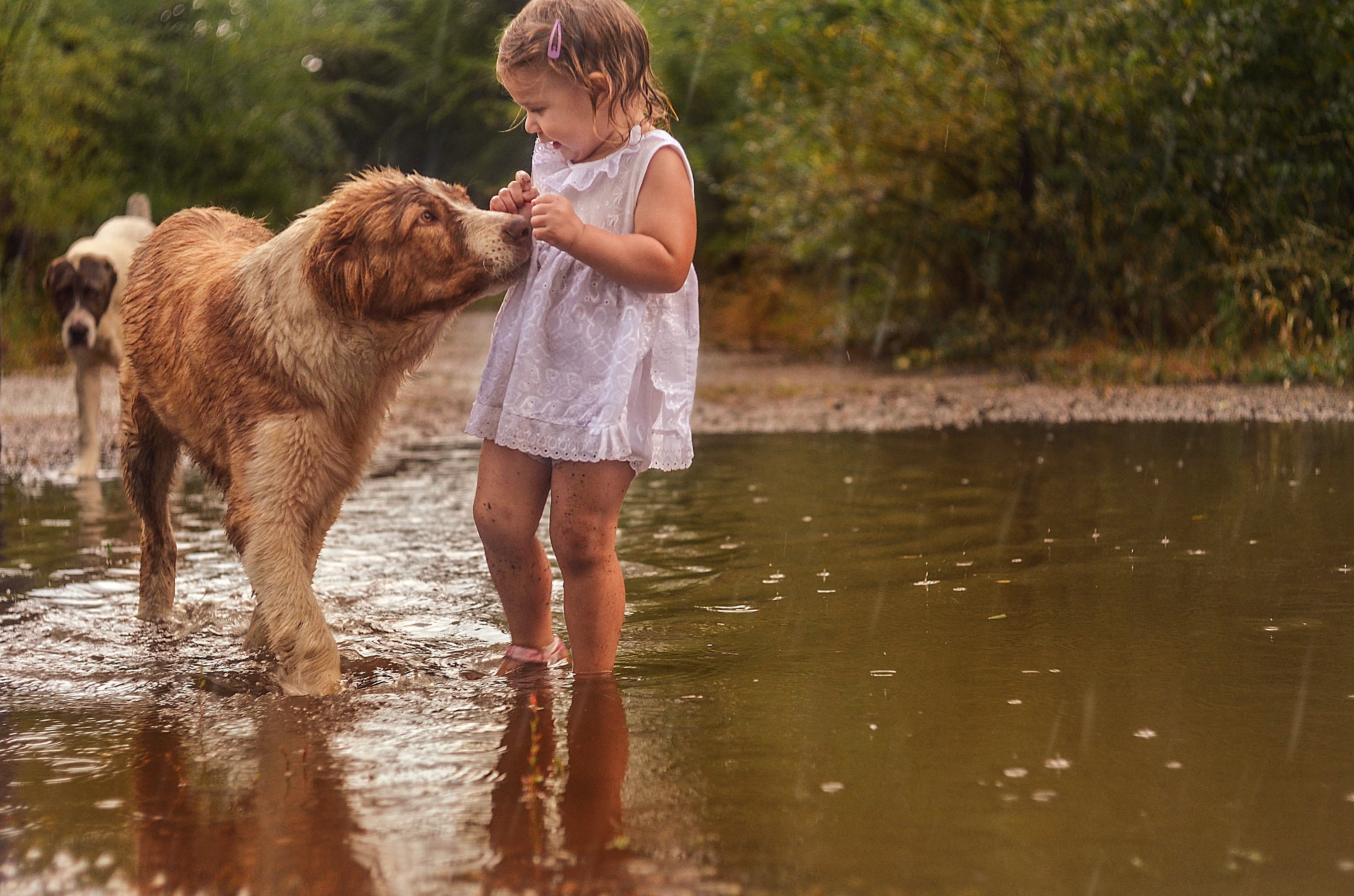 (собачка её облизала),дома у нас Кавказец ,её любимый друг,а эти...ещё щенки совсем)
