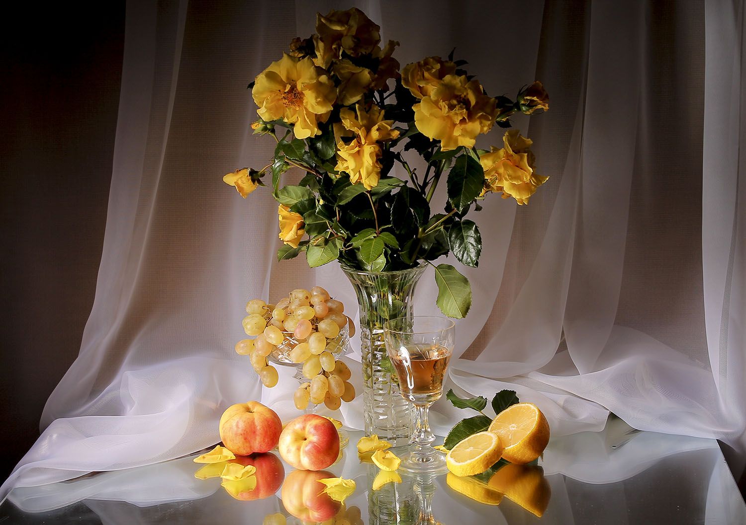 натюрморт, фрукты, розы., Людмила Павловна