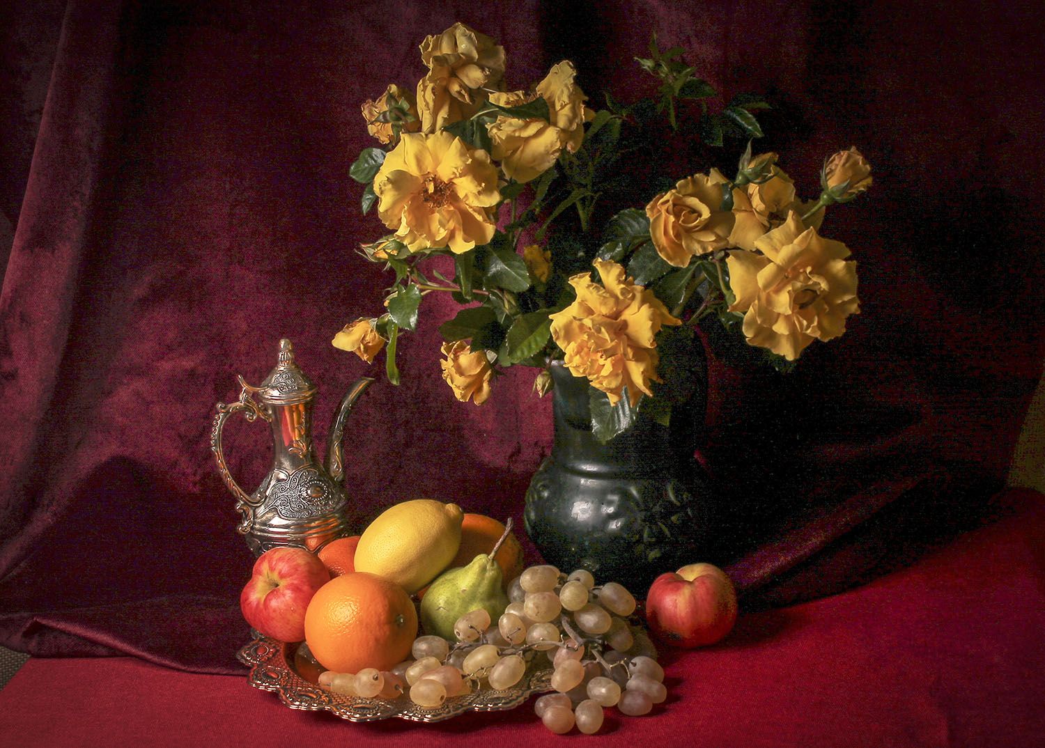 натюрморт, розы, фрукты, Людмила Павловна