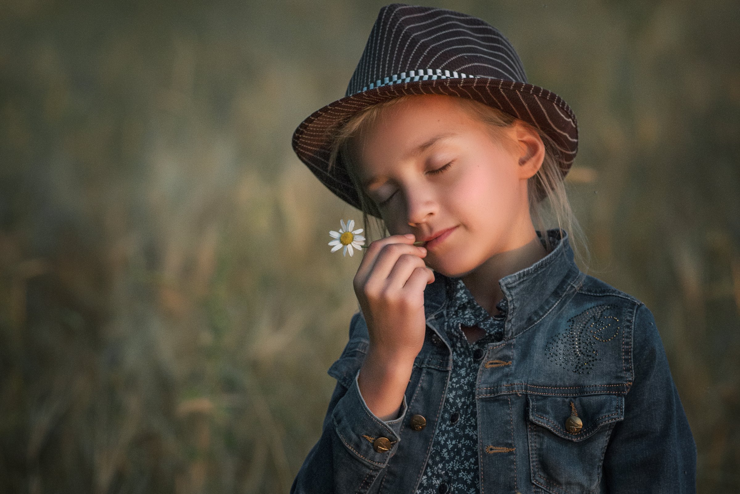 машка, ромашка и папина шляпа . лето. закат. дети., Максимова Людмила