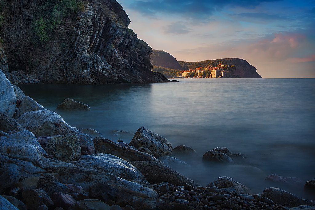 черногория, рассвет, море, камни, MacGyver