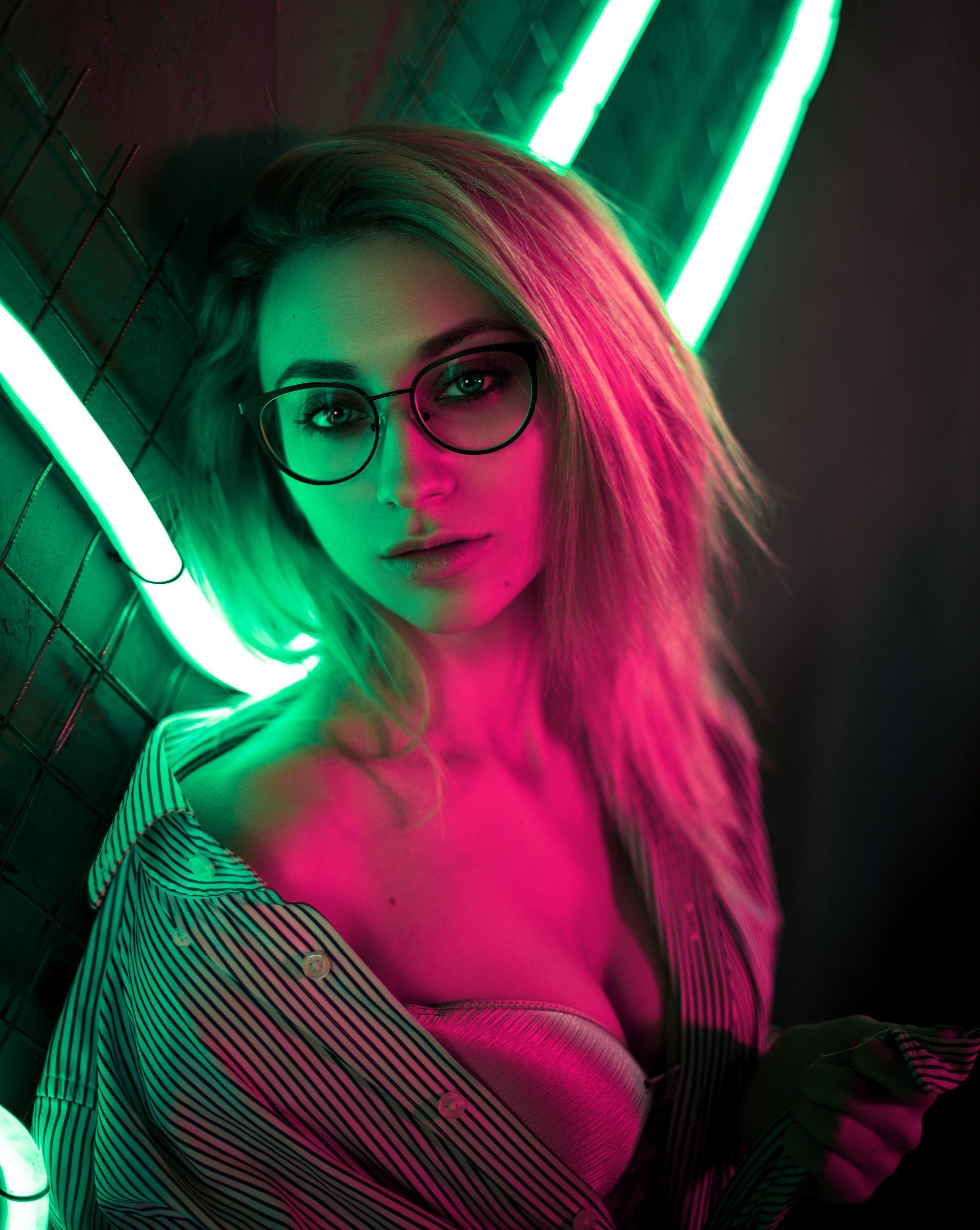 портрет, девушка, неон, Магизова Резеда