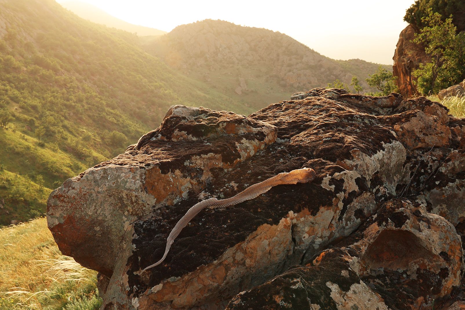 Классный кадр! Ждем продолжения :) Очень давно, в районе Кушки, Туркмении, я специально искал и её и кобру. И уже тогда они были очень редки, змееловы постарались. Видел убегающую гюрзу, снять из за густой травы не смог, но был неприятно удивлен когда она сделала полуторометровый бросок в мою сторону под углом 90 градусов от своего курса