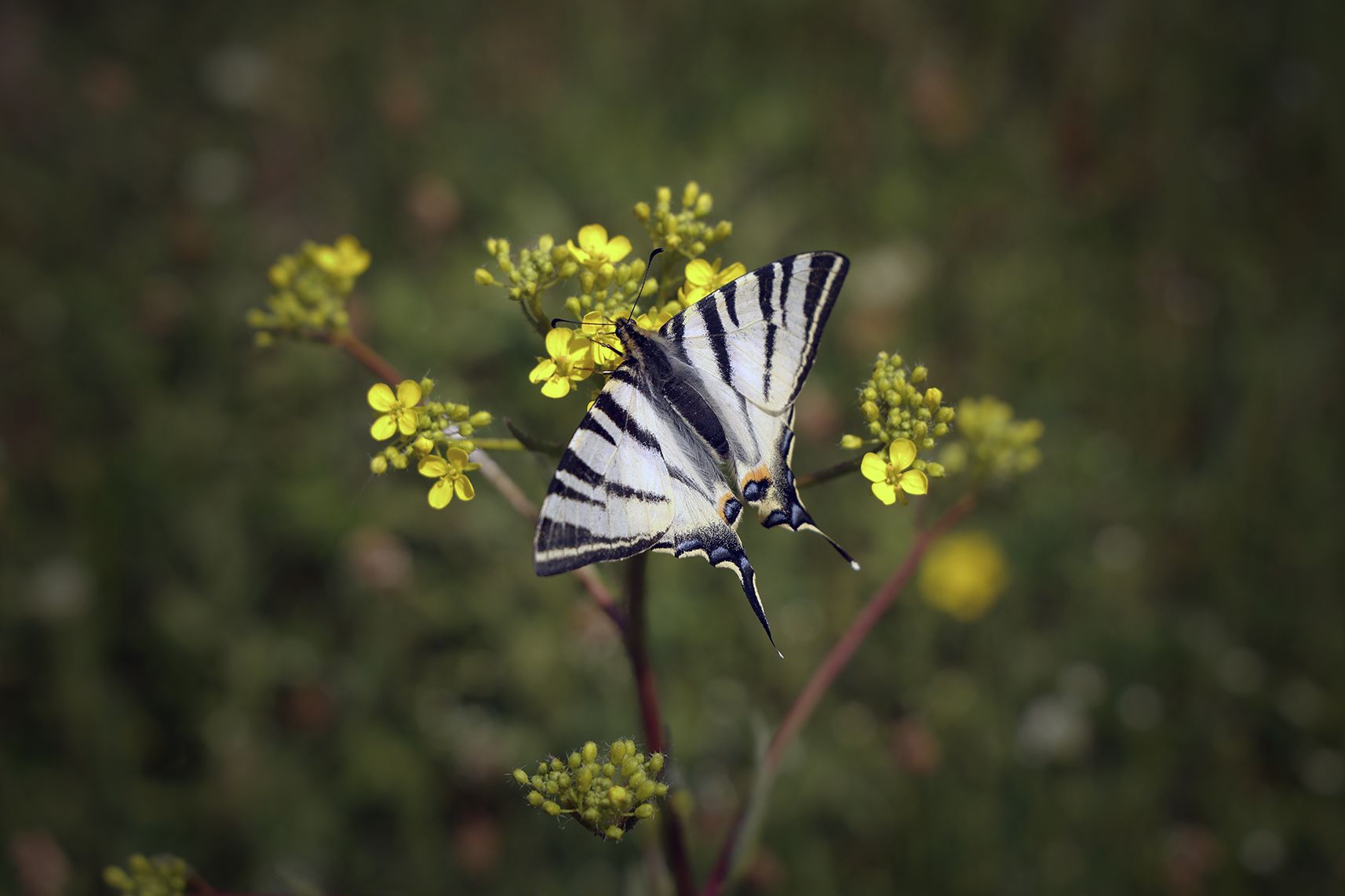 Отличный кадр и бабочка прелесть! Это Подалирий (Iphiclides podalirius) — бабочка из семейства парусников. Был внесен в Красную книгу СССР (1984) как сокращающийся в численности вид.