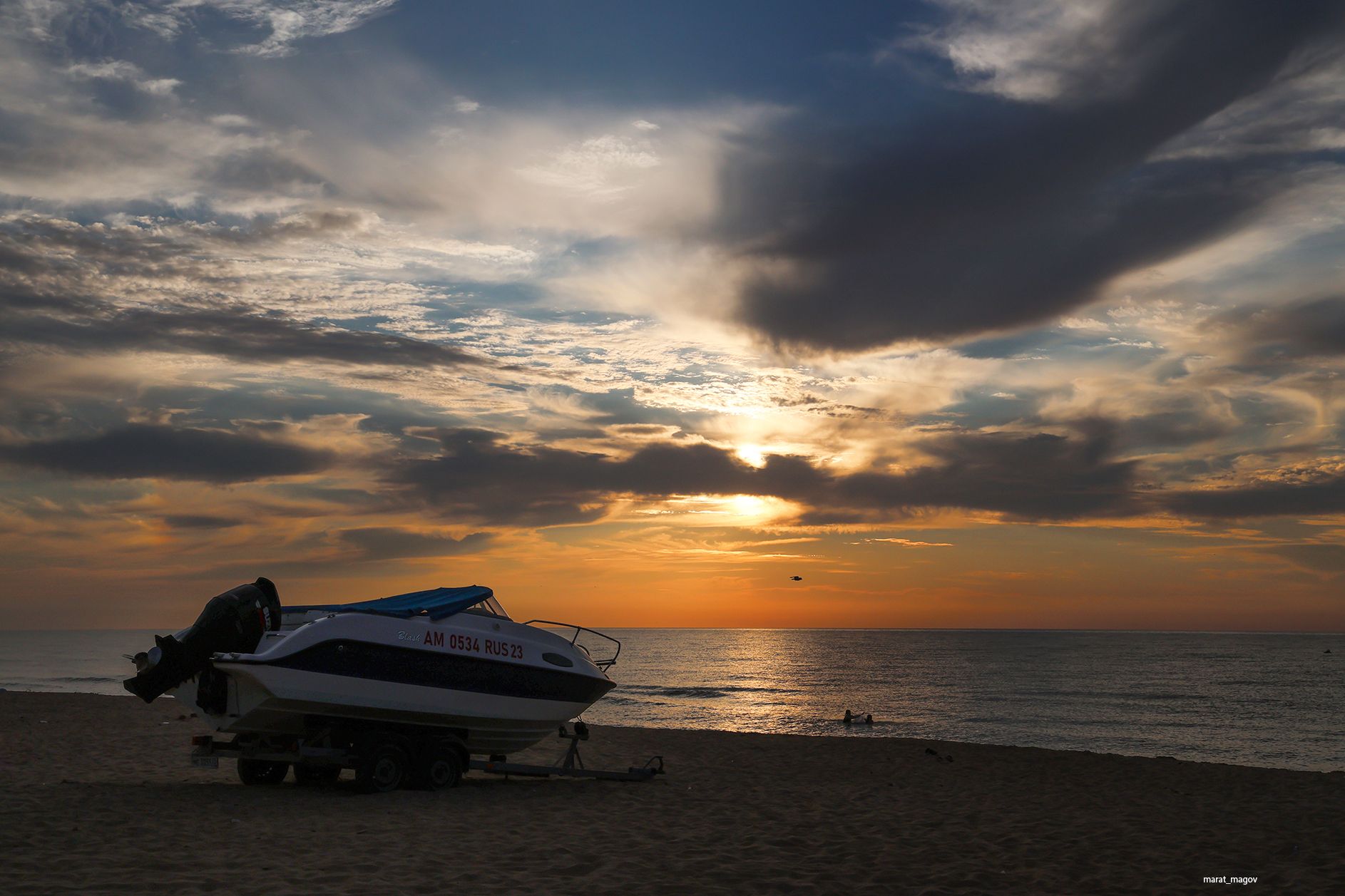 утро,рассвет,пляж,катер,пейзаж,каспий,море,дагестан,, Magov Marat