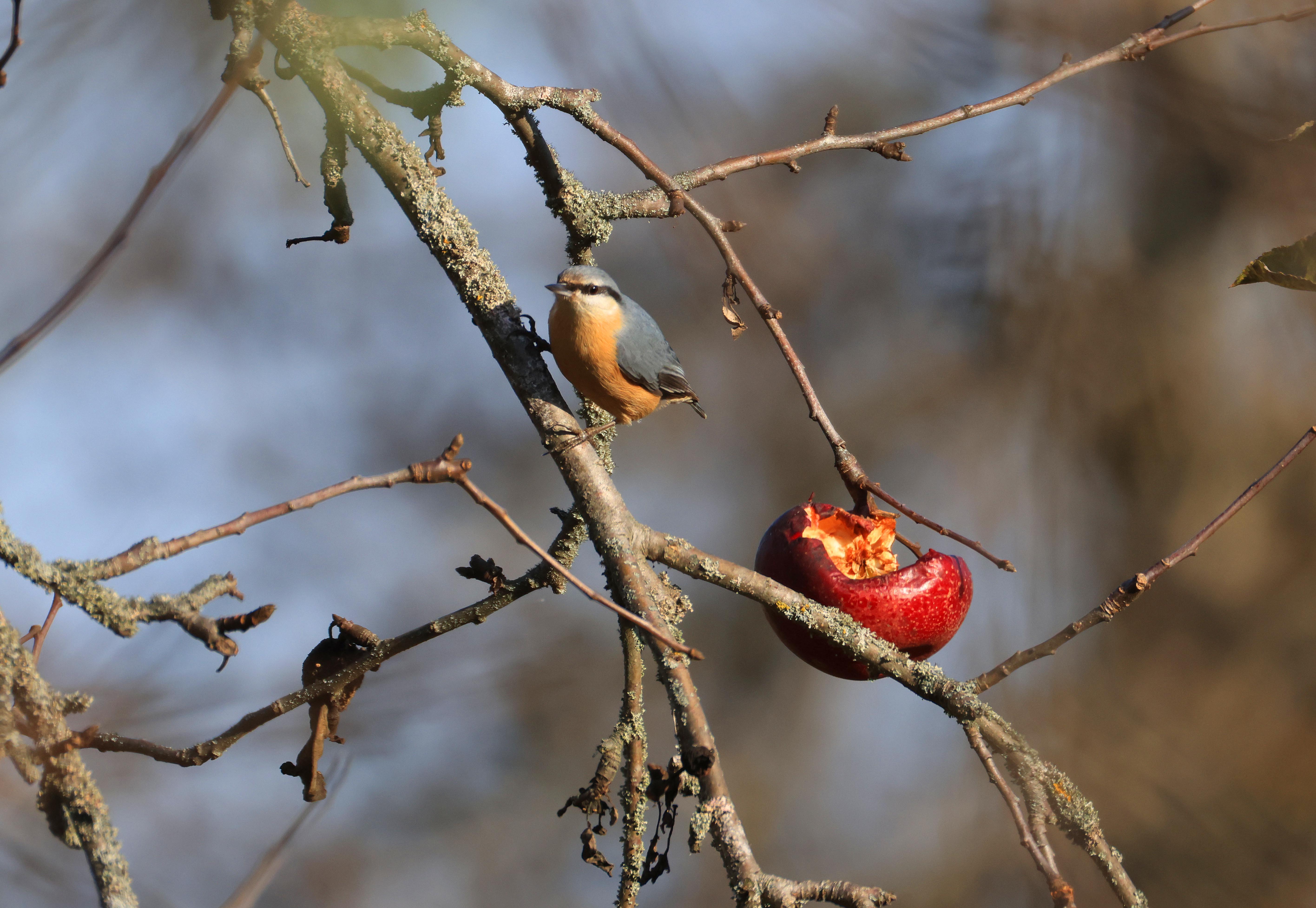 Вот и у нас в саду красные яблочки поднакусывали пернатые!