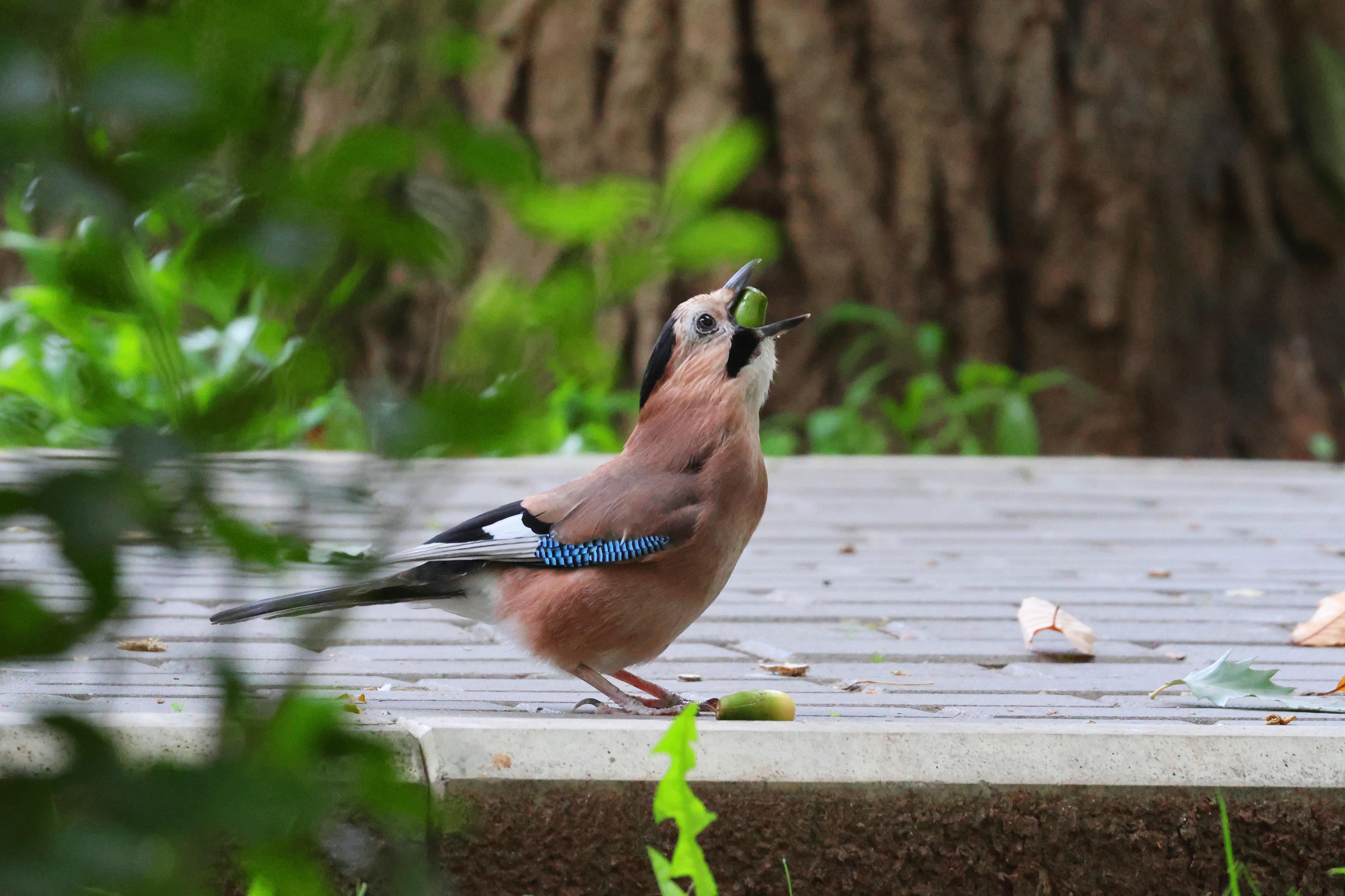 Из серии Сойка и жёлудь.. Вторая попытка проглотить жёлудь.. то же не удалась..!