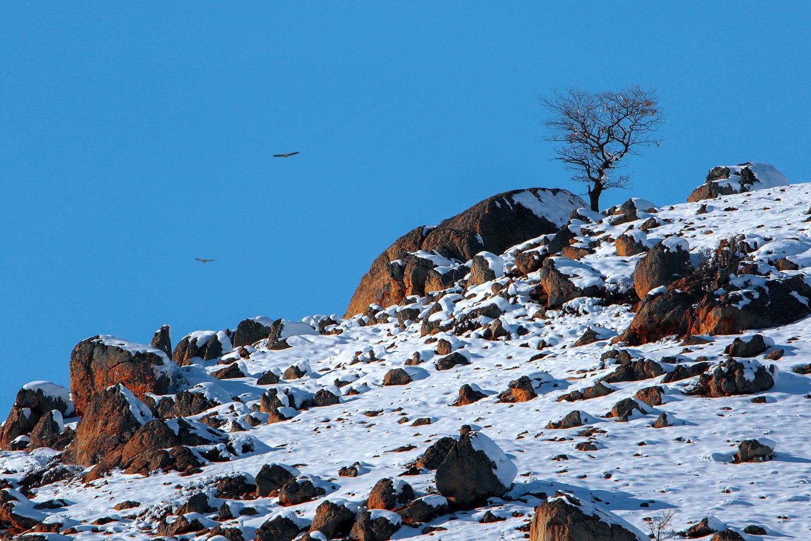 Прикормить не пробовал? У нас в Алуште, одна пенсионерка лет 5 их подкармливала салом. Всю пенсию на это тратила, покупала одним куском не менее 4 кг, чтобы вороны не могли унести. Особенно часто носила им в период с января по март, когда яйца высиживают и птенцов выкармливают. Они так к ней привязались, в 3-5 метрах садились, но подпускали только её, при чужих не подлетали. Благодаря ей, их поголовье в районе Алушты утроилось! Но потом у неё внук родился, и она на него переключилась :)