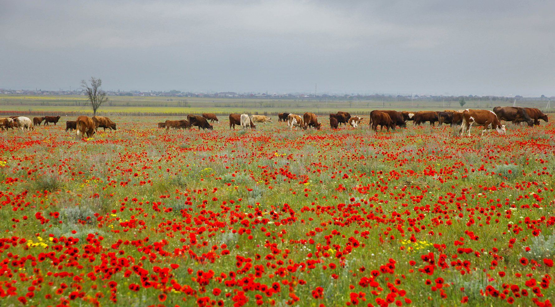 коровы,поле.маки.весна,, Marat Magov