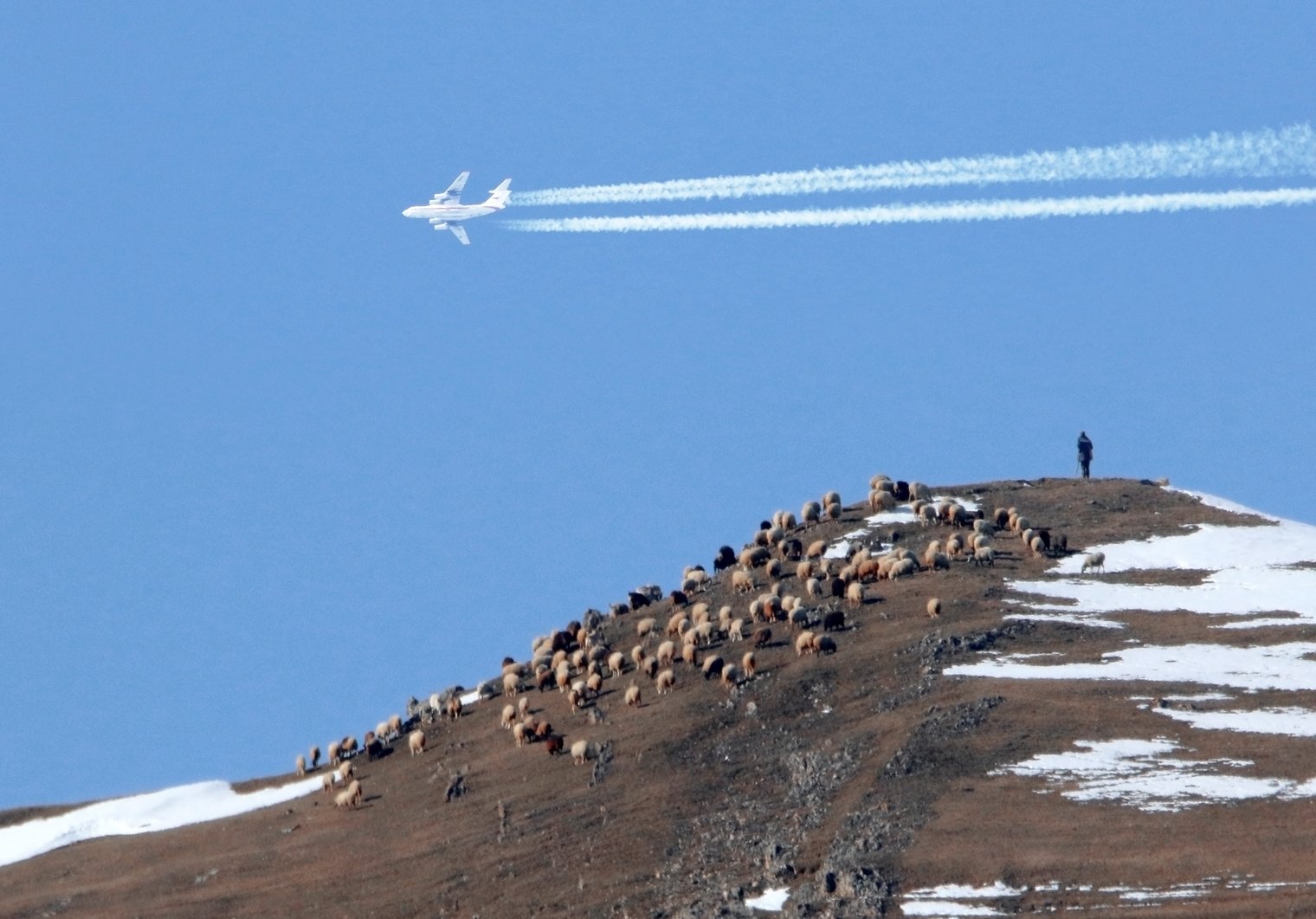 горы,отара,пастух,самолёт,вершины,пейзаж,небо,деревья,дагестан,природа, Marat Magov