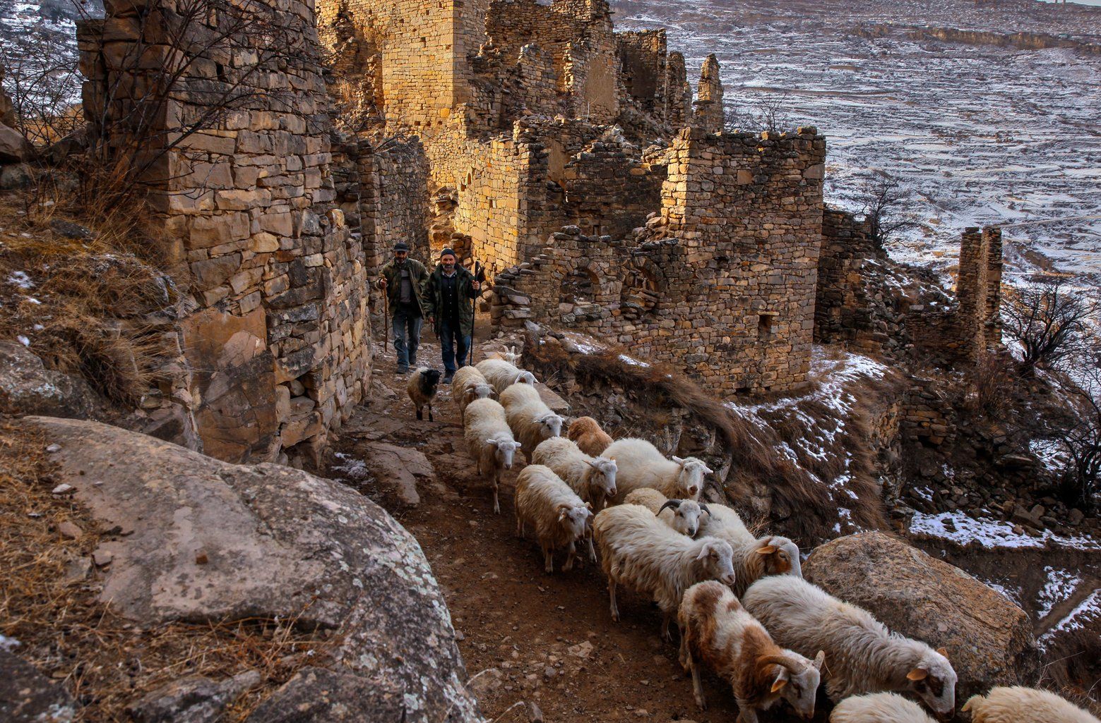 овцы,пастух,развалини,горы,вершины,пейзаж,небо,деревья,дагестан,природа, Marat Magov