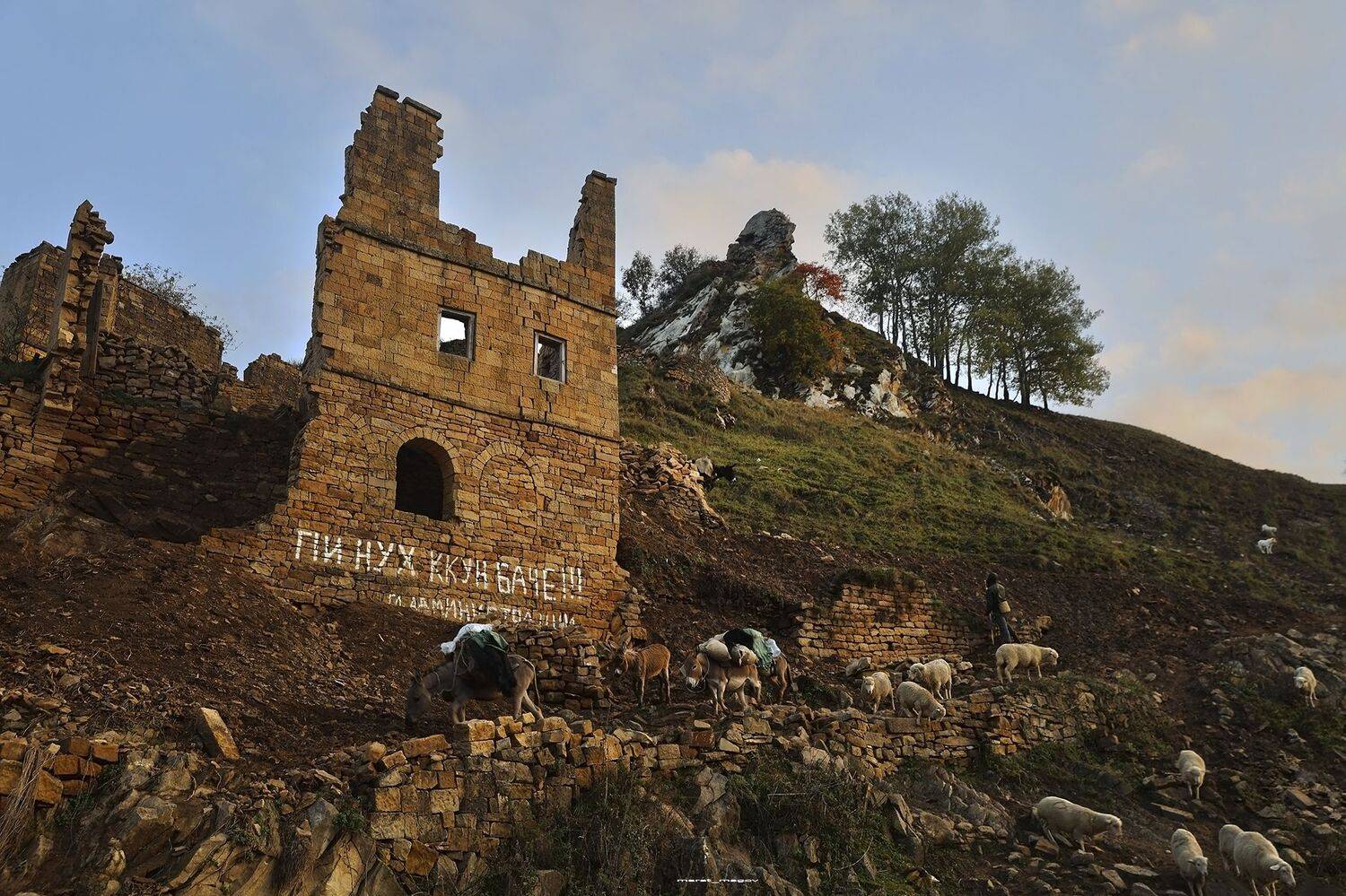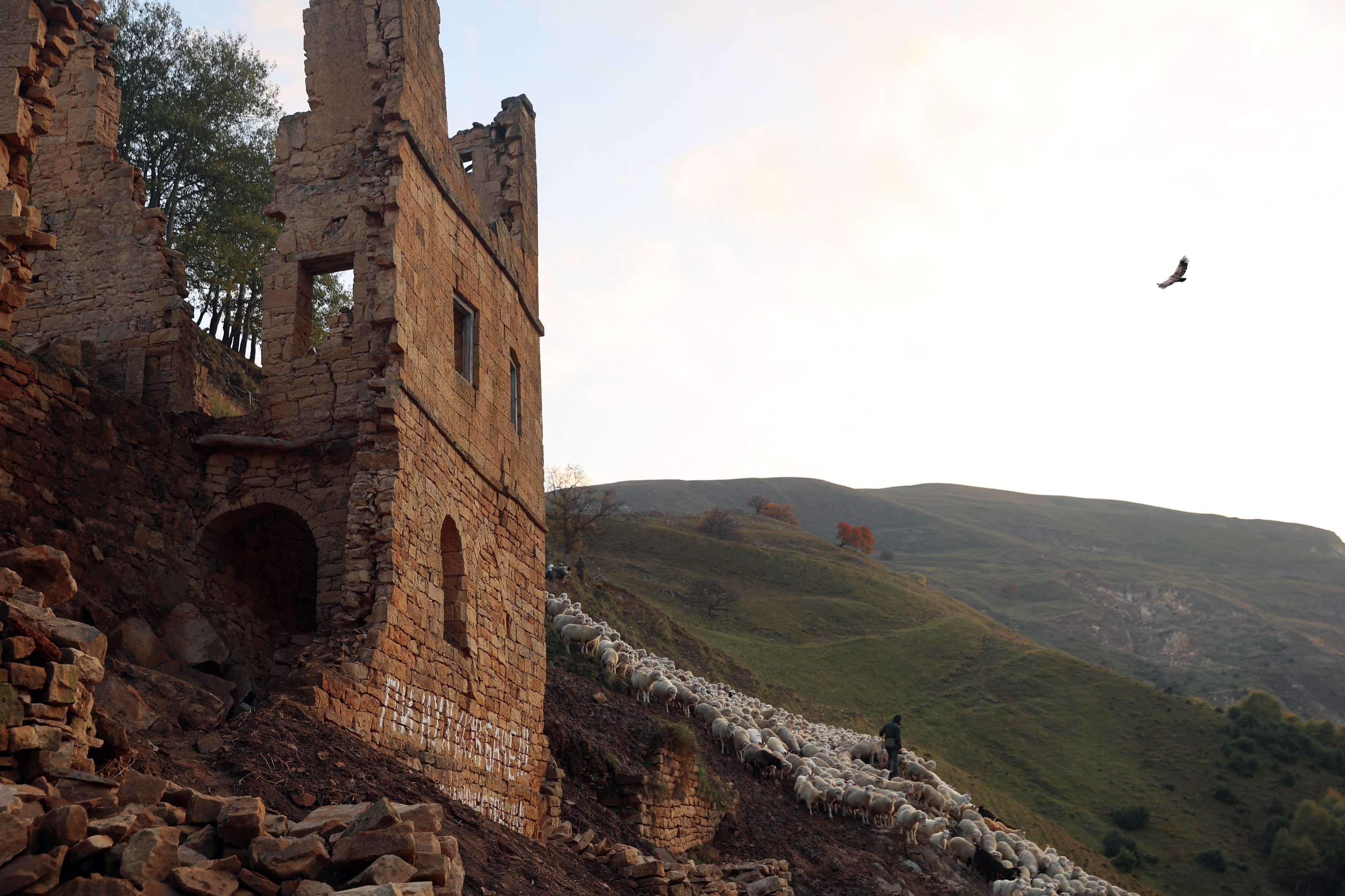 Перегон овец с летних горных пастбищ на равнину.. Гунибский район Дагестан..