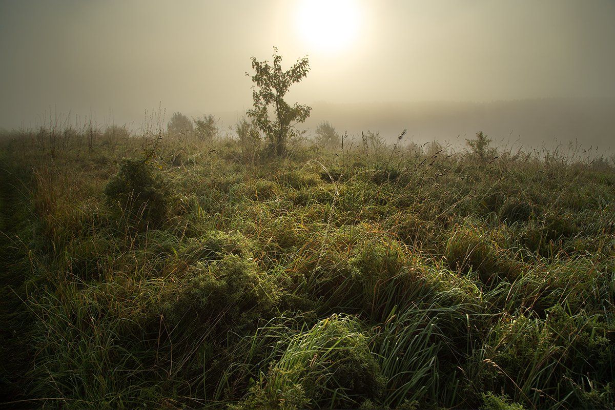 рассвет, туман, трава, Макаров Роман