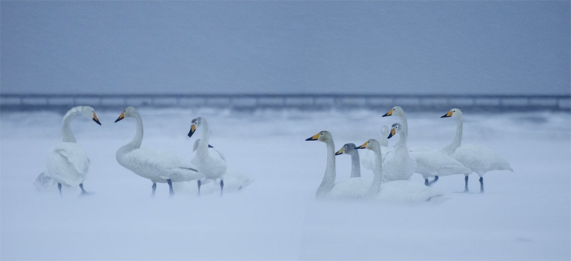 В апрельский перелет с Хоккайдо на Камчатку лебеди находят временное пристанище на юге Сахалина и в центральной части острова – на озере Тауро Углегорского района…