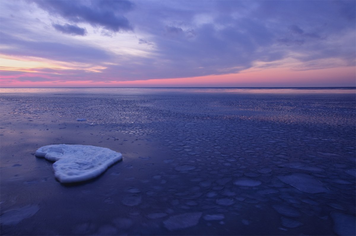 Море – неисчерпаемый источник для вдохновения. А снежная пора дарит нам различные неповторимые фигуры. Вот и в этот день природа подарила мне краски заката интересных оттенков и «одинокое сердце»… Осталось забраться на один из обледенелых камней и запечатлеть подаренный сюжет.