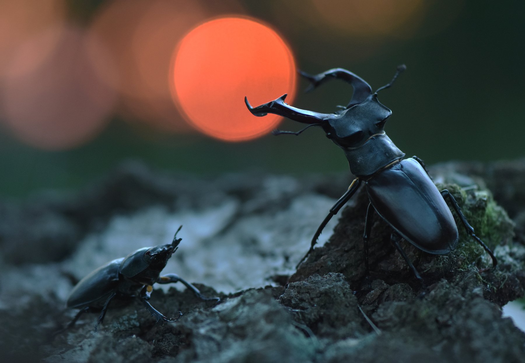 Самец и самка жука Оленя . Занесён в красную книгу РФ а также некоторых Европейских странах, в России в некоторых городах являются исчезнувшим видом Членистоногих семейство Рогачей. При съёмки не один из них не пострадал, они живые, снято в дикой природе. На моей Родине в Курской обл. частый гость у меня в саду на старых яблонях, и каштанах. Были попытки сделать фото, как говорится чтобы всё сошлось, но увы, в течении нескольких лет эти попытки окончились провалом, и только в этом году получились те кадры которые мне понравились, и хочется эти кадры представить вашему драгоценному вниманию.