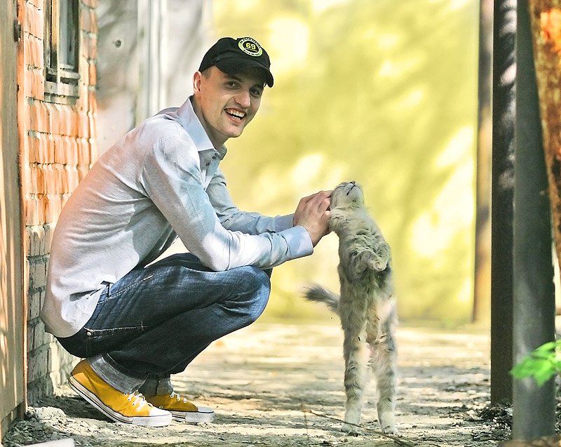 ИМХО одно немного смущает цвета... может лучше в ЧБ и кошку сделать более контрастной.