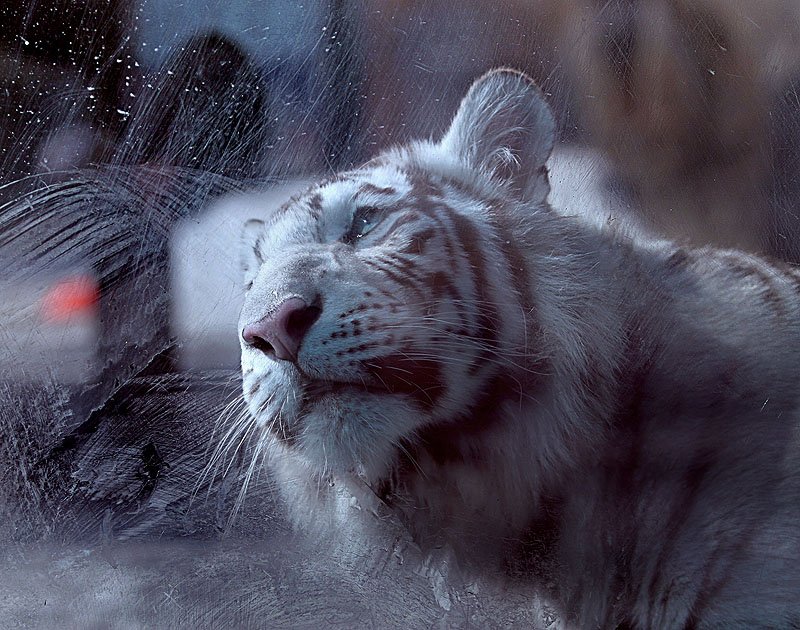 Да уж, стекло в зоо именно такое:поцарапанное,грязное и обслюнявленное с двух сторон, с одной - тигром, с другой посетителями!Снимать без артифактов очень сложно!