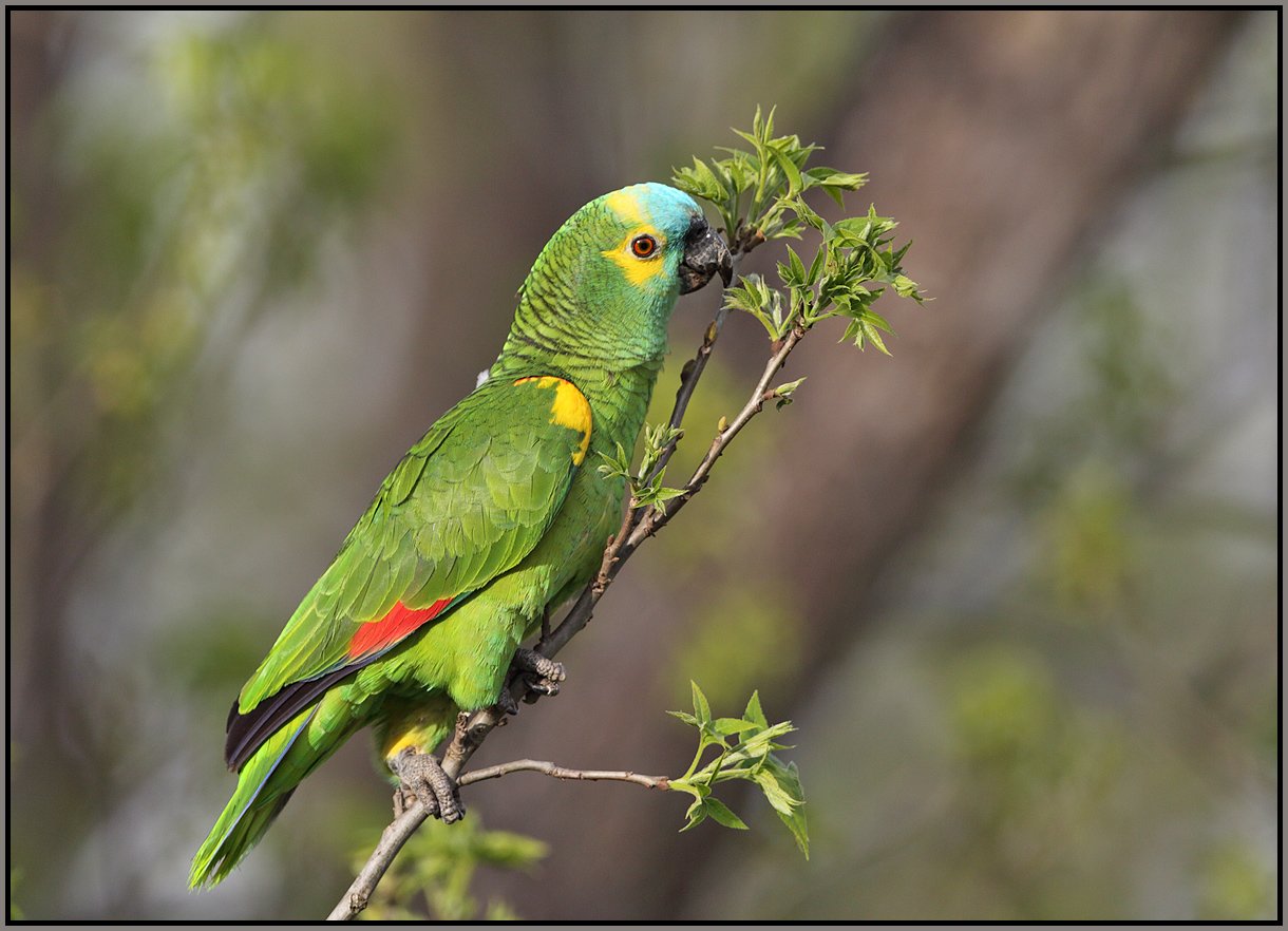 Самое странное что попугаи не должны водиться в наших краях ,но их то ли кто-то завёз то ли кто то выпустил ,этот незнаю породы, совсем необычен для нас ,в основном ожереловый ,уничтожая ореховые сады пикан,это ветка распускающегося ореха пикан