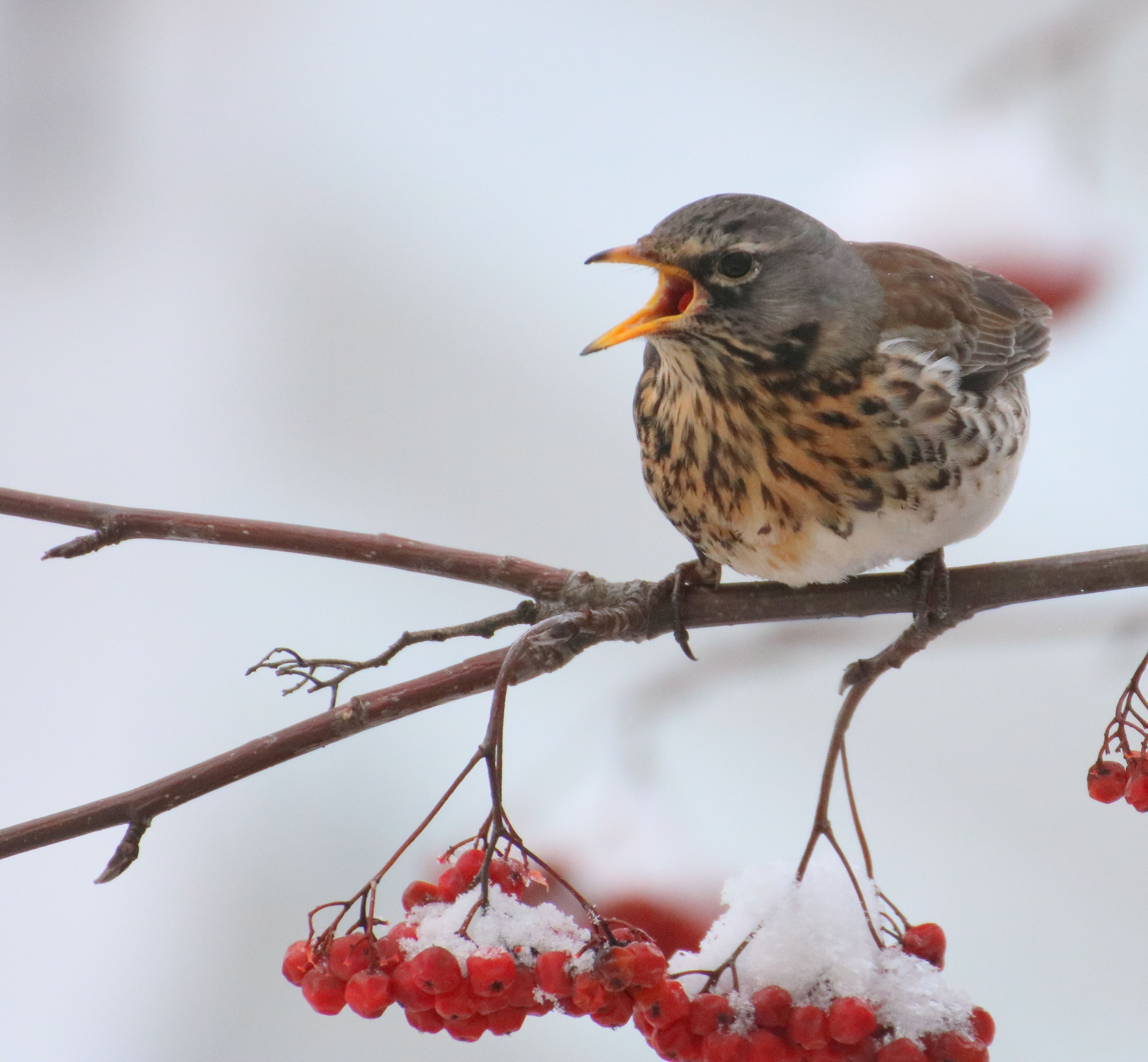 рябина, зима, дрозд, Евгения Малафеева