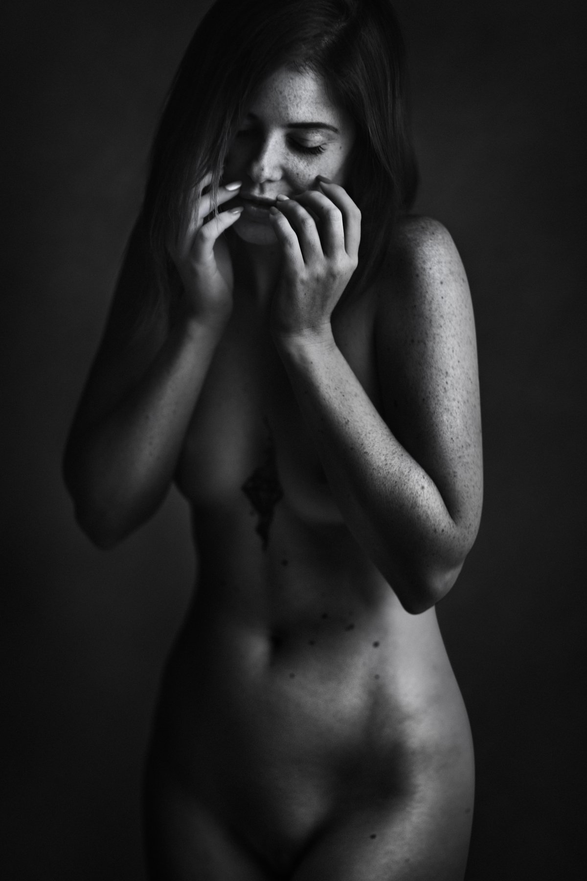 Пересматривая те снимки, которые получились у нас с Алисой, мне вдруг показалось, что она очень тактильный человек. Об этом говорят, как мне кажется, некоторые её жесты и эмоции, которые проступают на её лице от прикосновений. Не удивительно, что у нас получилась фотосессия “ню” - ведь чем меньше одежды сковывает кожу такого человека, тем больше эмоций подарит ему его тактильность при любом контакте с окружающим миром.
