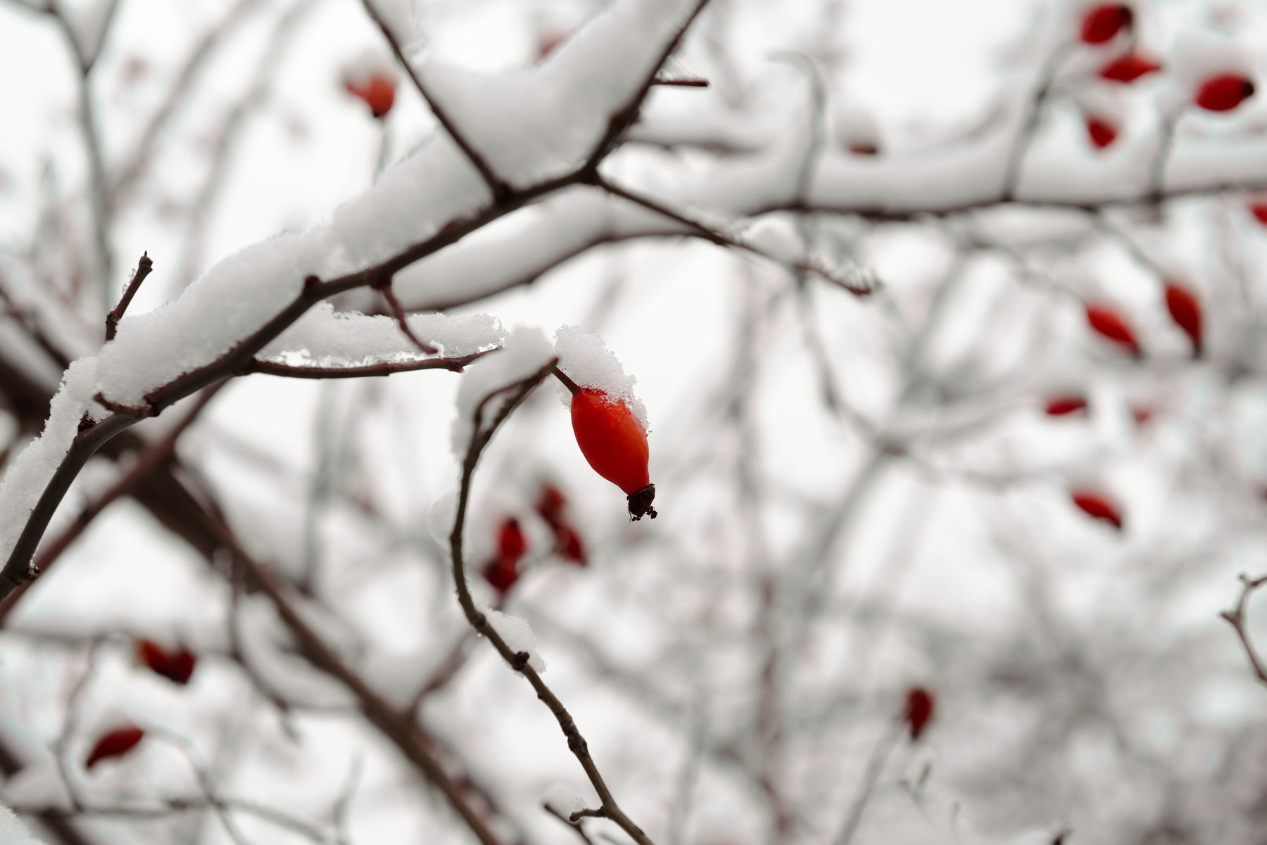 Due to the warm weather some bushes started to bloom... In January... And then it snowed.