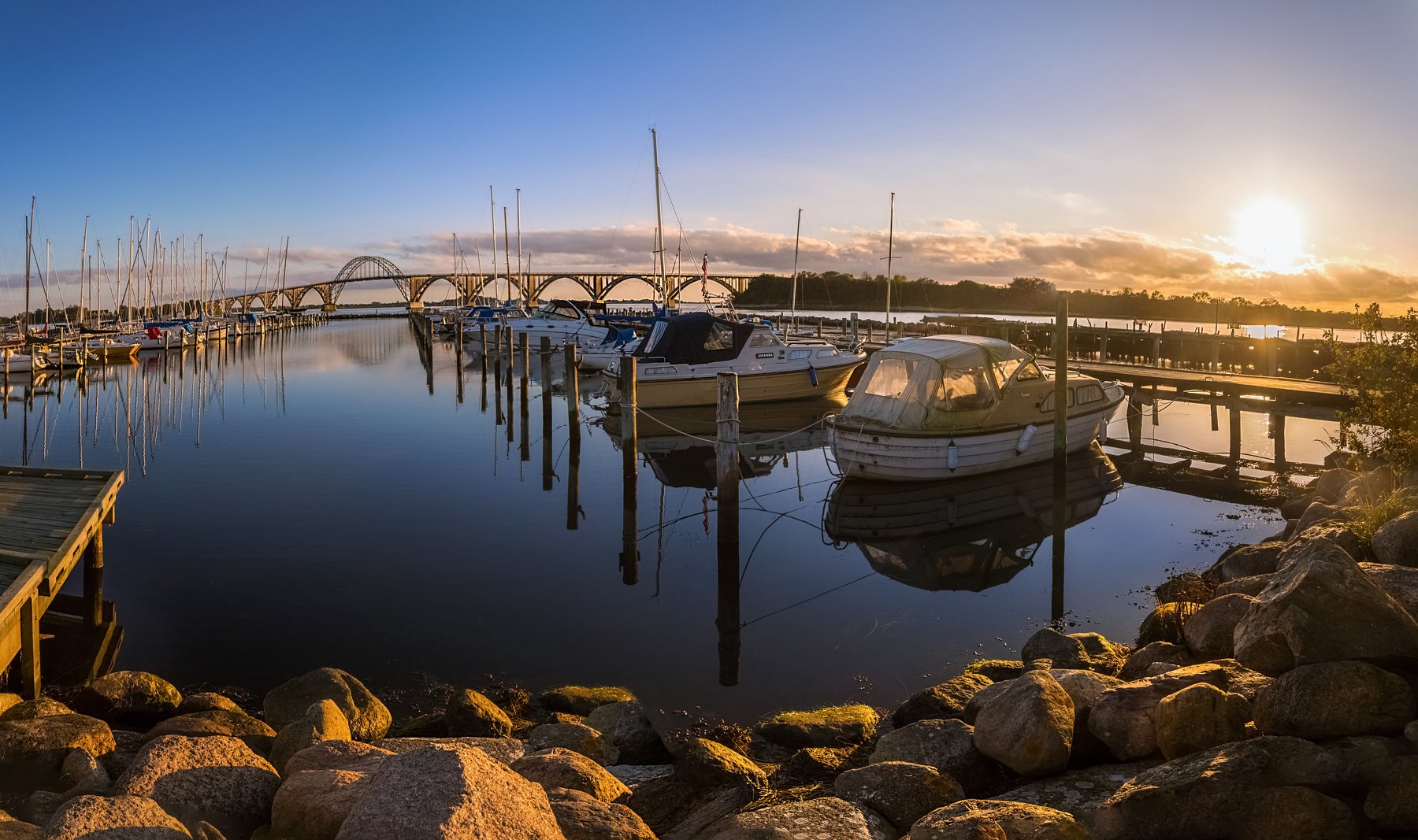 дания, пристань, лодки, море, мост, солнце, небо,,  Marat Max (Марат Макс)