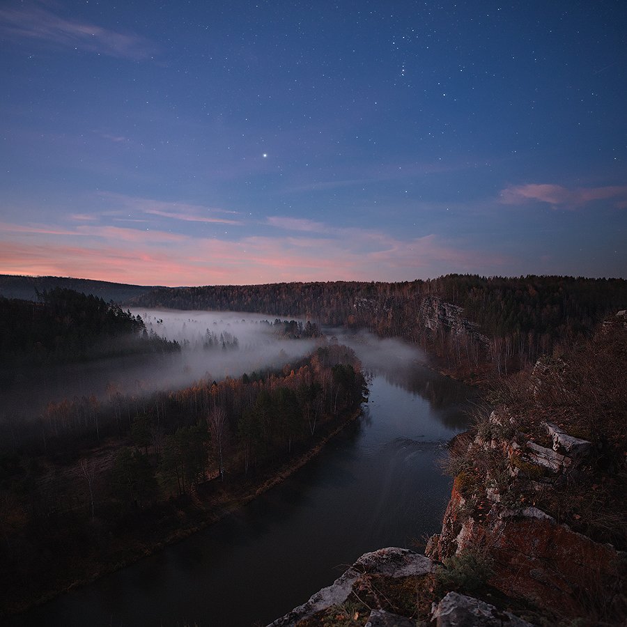 Так то даже не думал снимать в это время, просто встал пораньше, чтобы сделать нижний кадр для панорамы с млечным путем (сам млечный путь вечером снимал) . Потом по инерции начал фотографировать, небо прям на глазах менялось :)