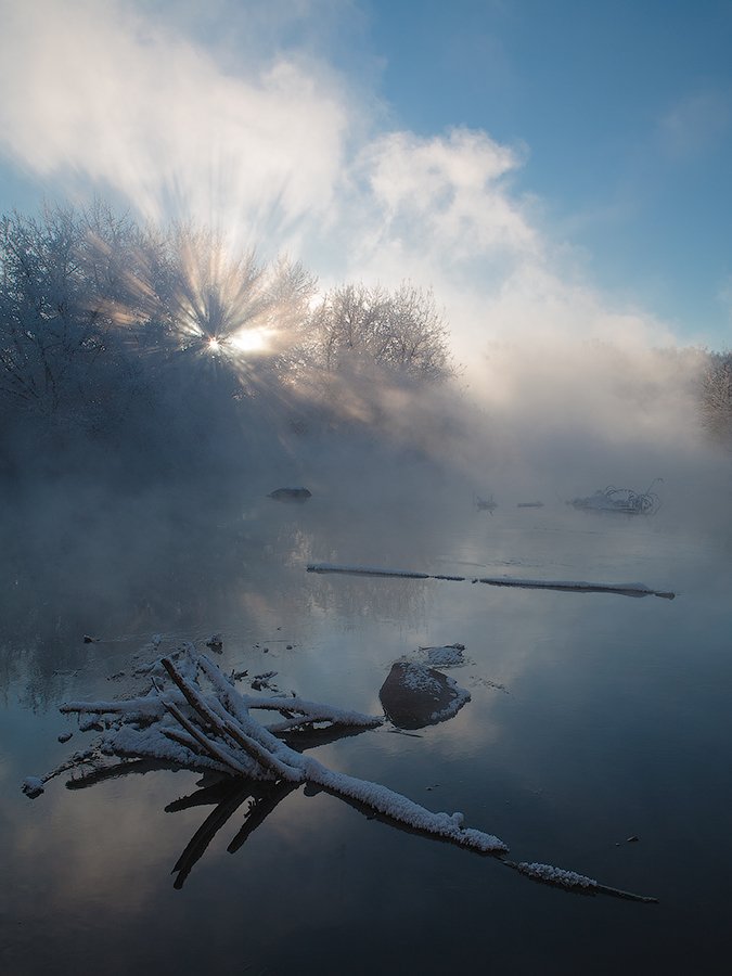 Главное теплую одежду не отдавайте, она пригодится :) Разведайте где поблизости от вас есть незамерзающие "гейзеры" (в любом городе такие места есть), там как правило всегда иней на деревьях и дымка над водой :)