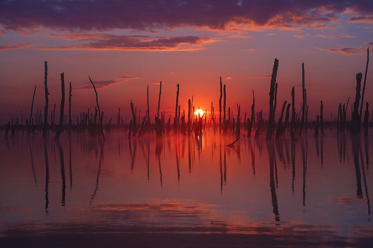 красивая работа, как и другие из "болотно-закатной серии", а за преодоление опасностей при шаговом измерении глубины трясины :) - респект. Лодка надувная не облегчила бы съемку?