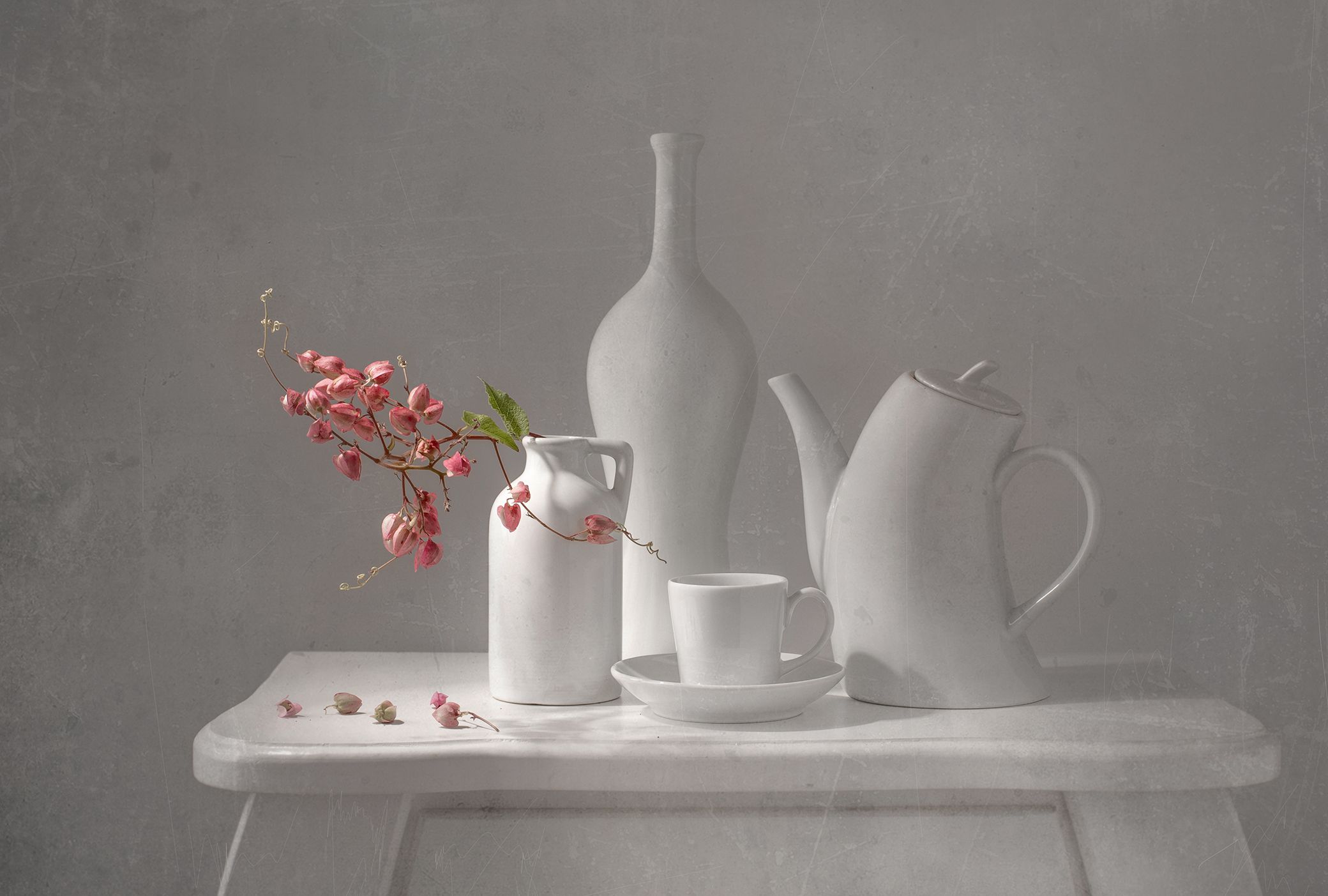 still life, white, coffee, flower, texture, Maria Margareth Perfoncio