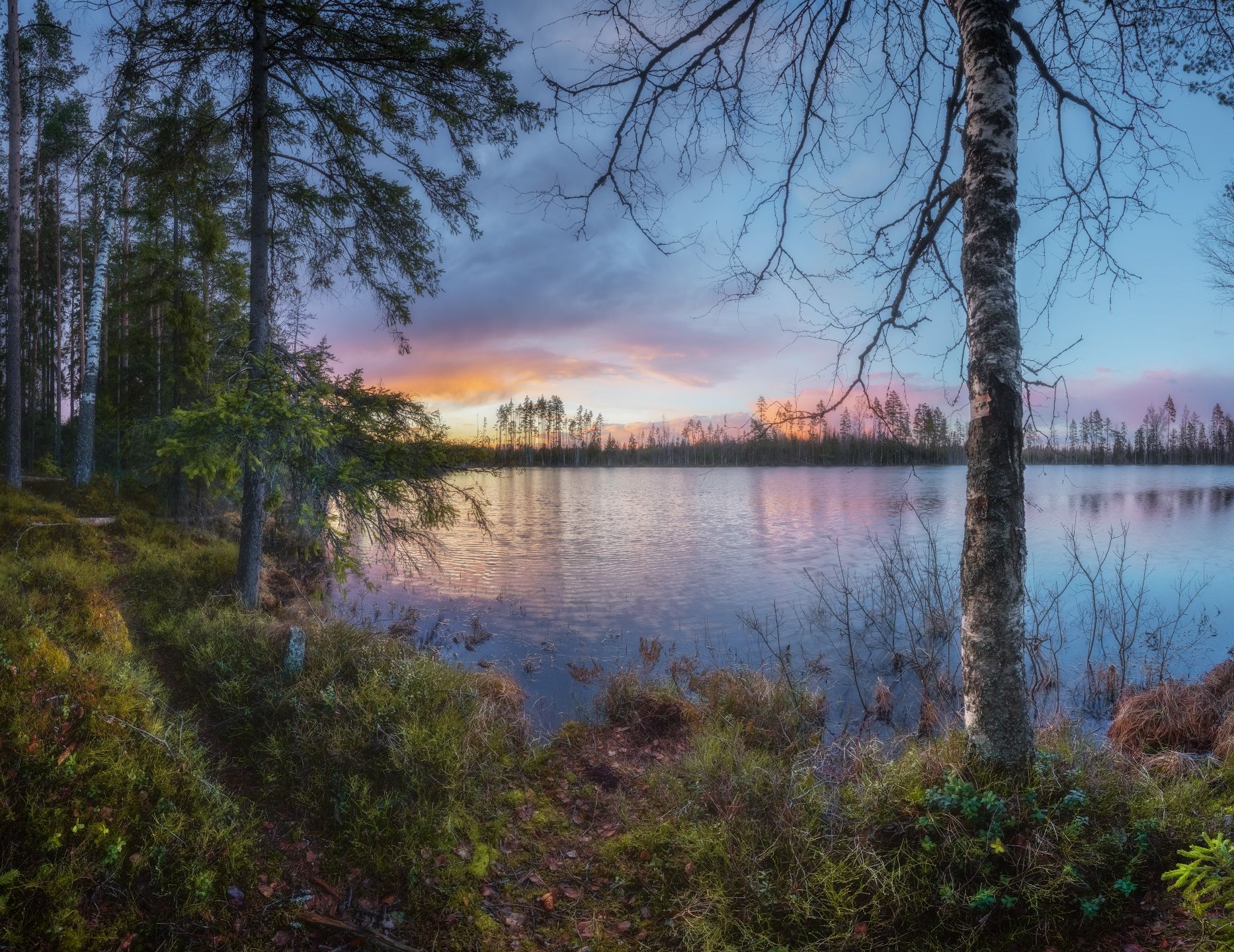лес, озеро, закат, Марголин Алексей