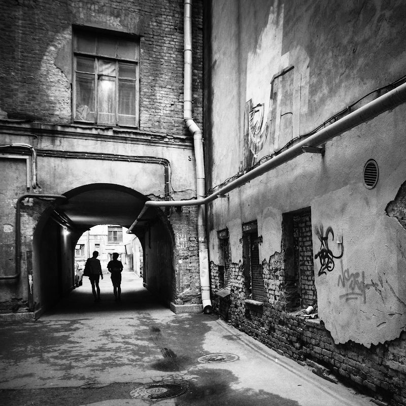 Ч/б более драматичен, присутствие людей сглаживает углы (или усиливает, сама не разберусь...)