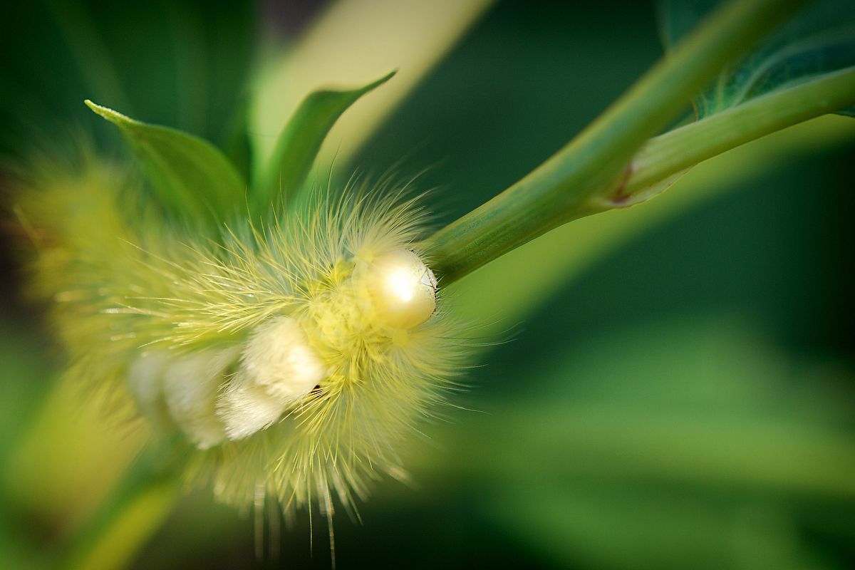 Да, на фоне нежной зелени хорошо смотрелась! Не знаю много ли ей съесть удалось, но челюсти были внушительными. Не стала эти кадры с челюстями показывать, а то эффект нежности был бы испорчен :-)