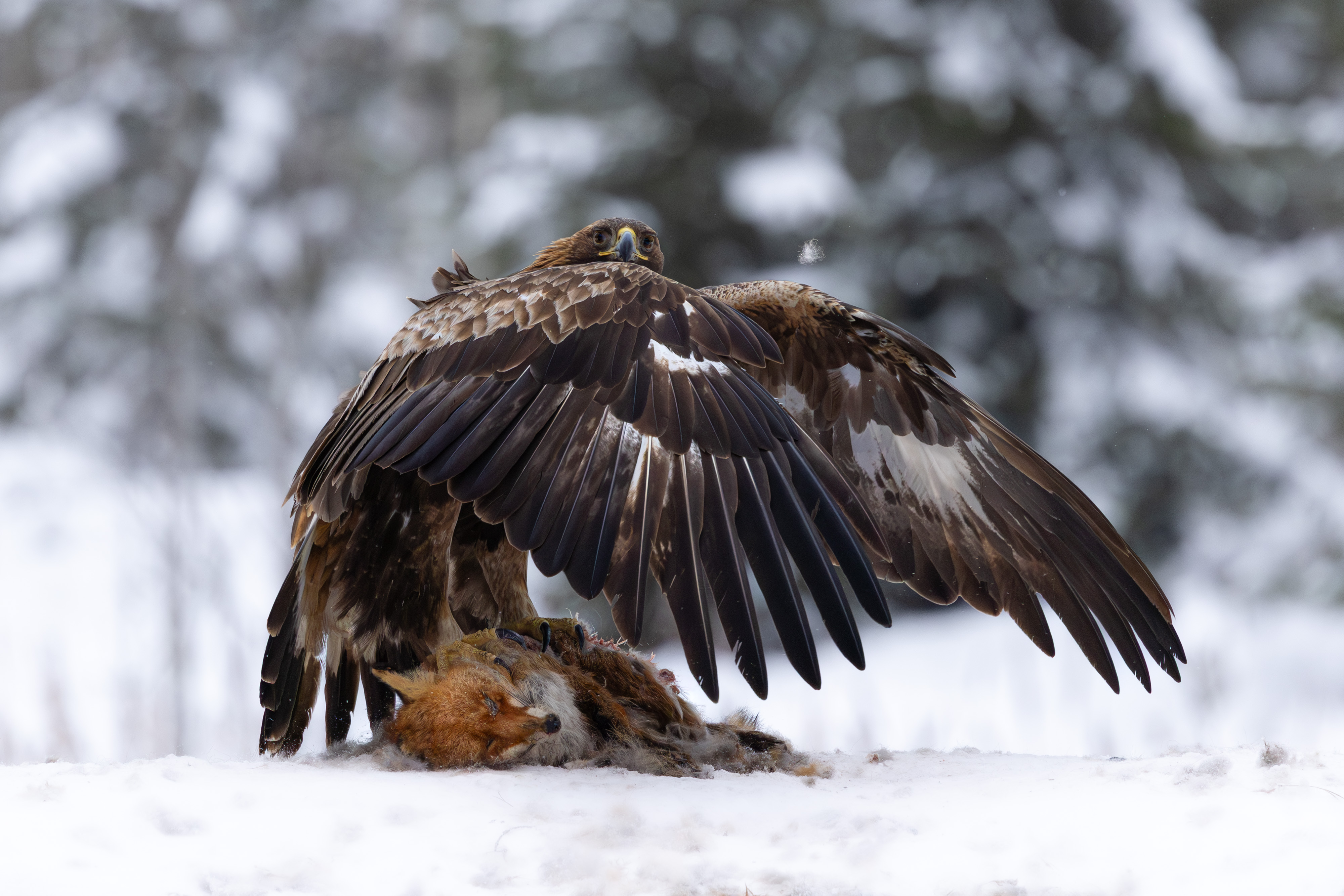 Вы передали мощь момента — беркут, как скала, охраняет добычу, и снег подчёркивает его величие. Фотография — о власти, о природе, о тишине, что не нужно говорить.